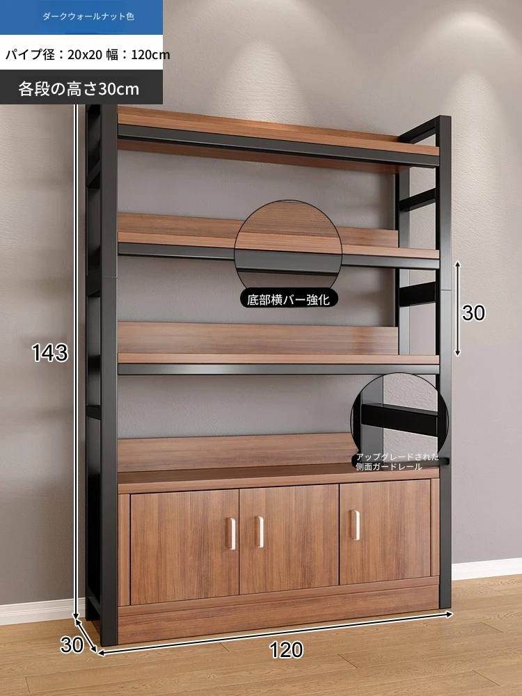【35-40層高 ダブルボトム横バー】深胡桃+黒フレーム4段棚120CM 【アップグレード扉ロック付き】