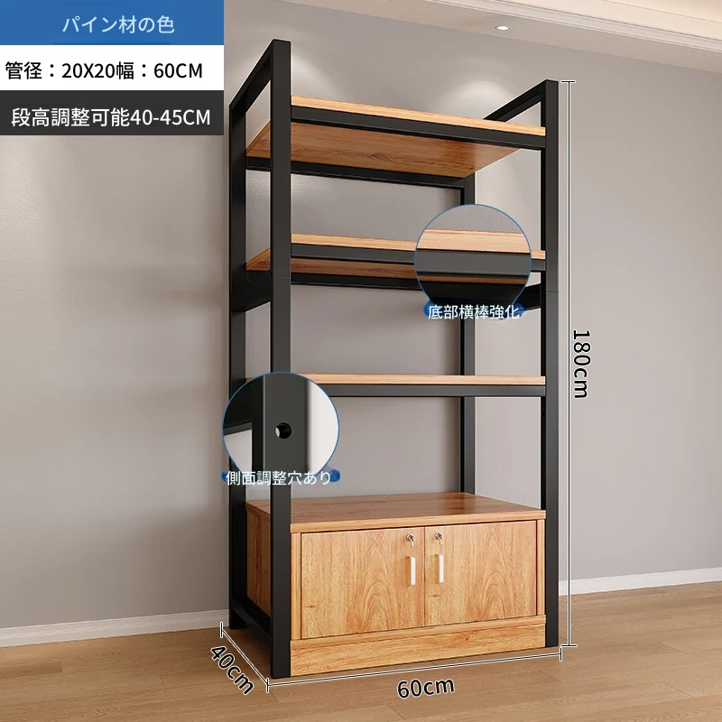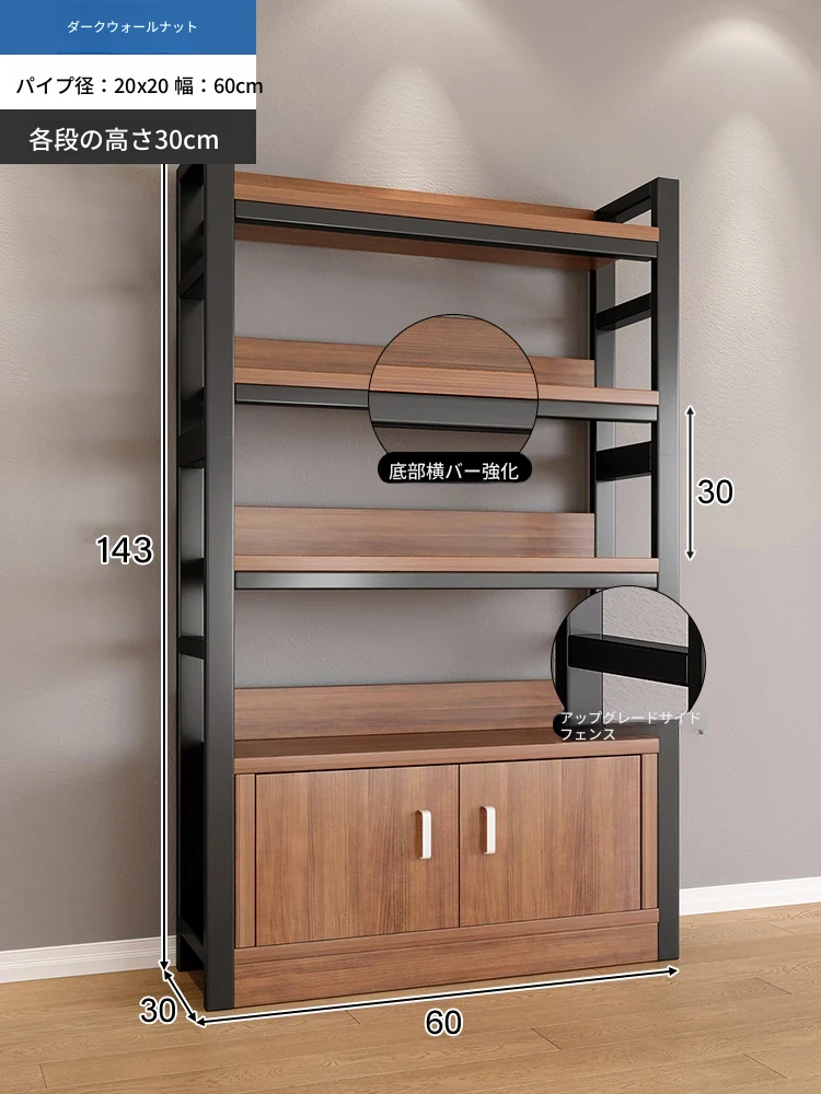 【35-40層高 ダブルボトム横バー】黄梨木+黒フレーム4段棚60CM 【アップグレード扉ロック付き】