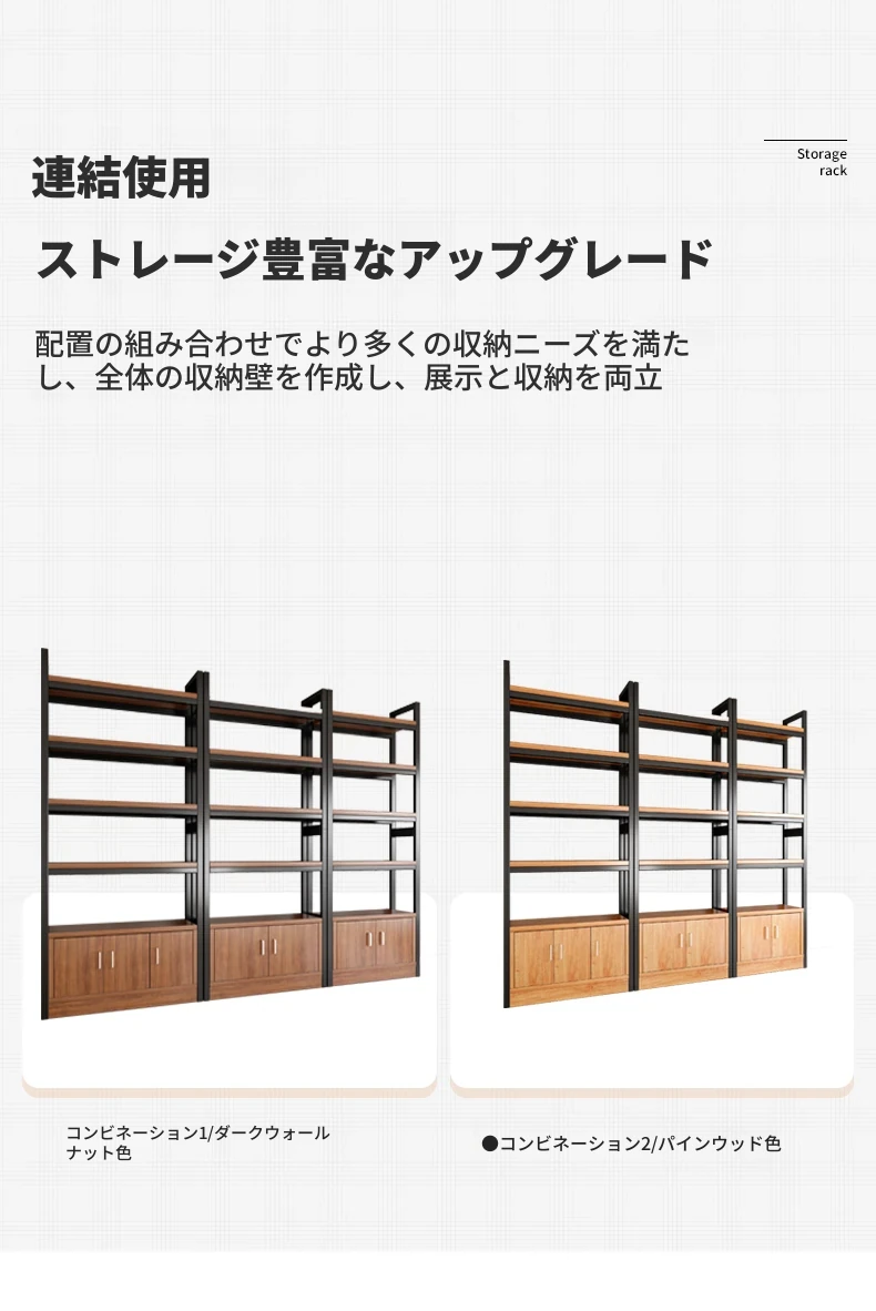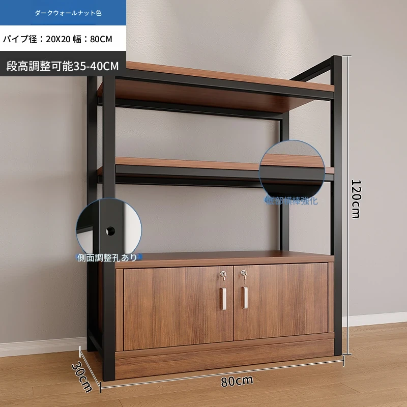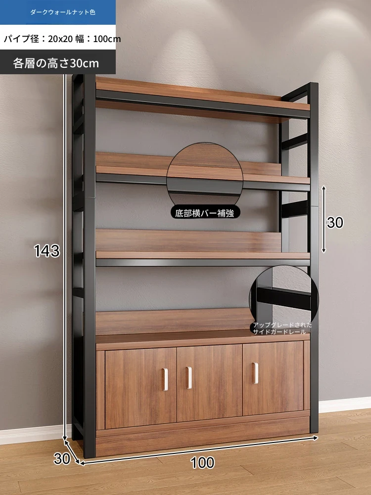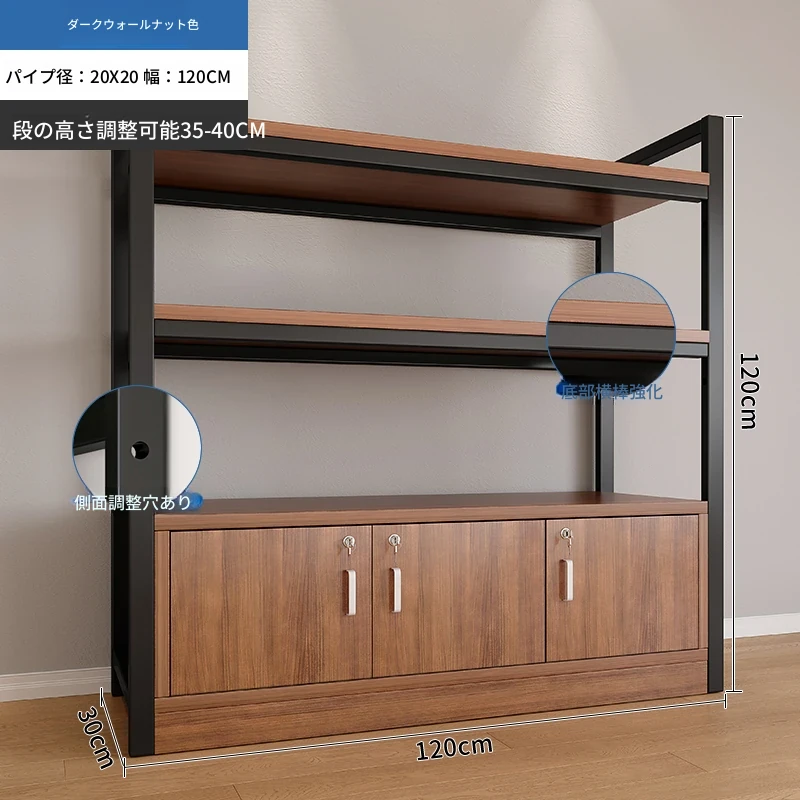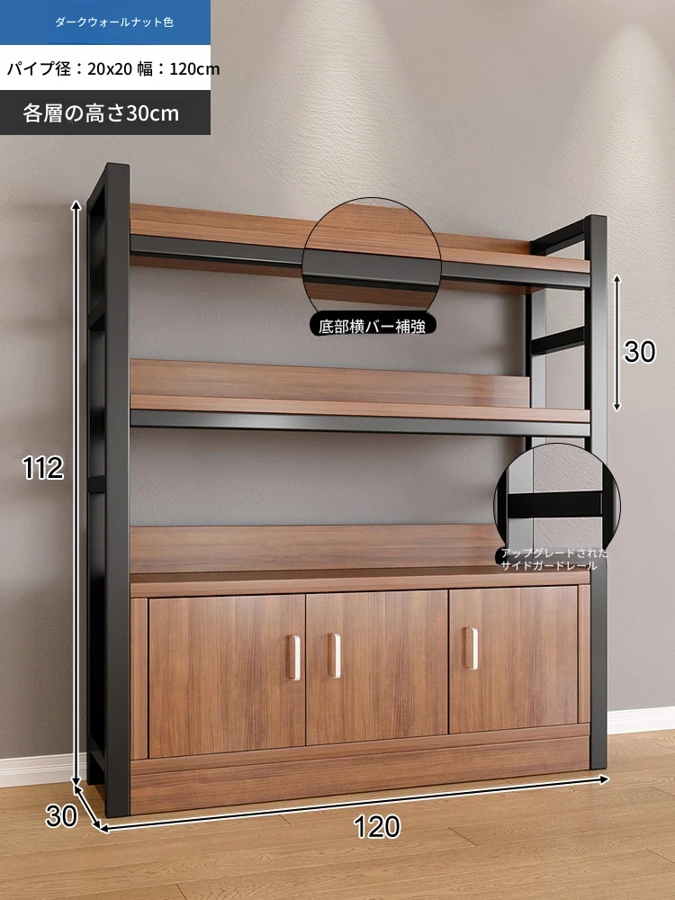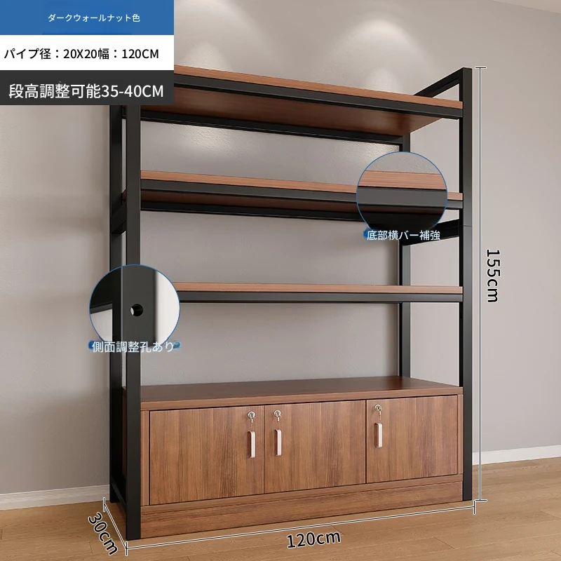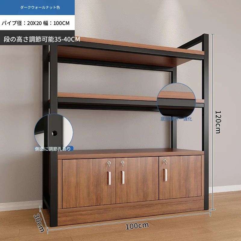【35-40層高 ダブルボトム横バー】深胡桃+黒フレーム3段棚120CM 【アップグレード扉ロック付き】