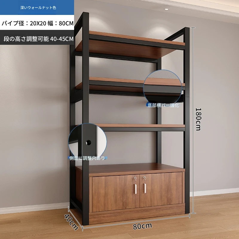 【40-45層高 深く高く】深胡桃+黒フレーム4段棚80x40x180 【アップグレード扉ロック付き】