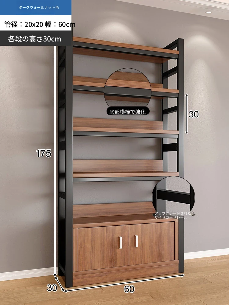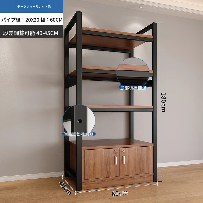 【40-45層高 深く高く】深胡桃+黒フレーム4段棚60x40x180 【アップグレード扉ロック付き】
