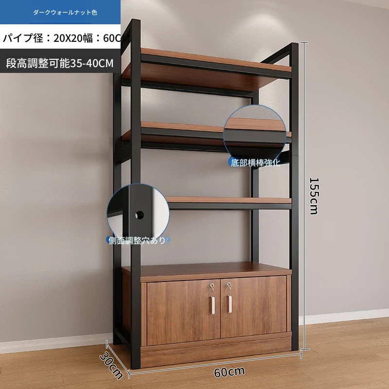【35-40層高 ダブルボトム横バー】深胡桃+黒フレーム4段棚60CM 【アップグレード扉ロック付き】