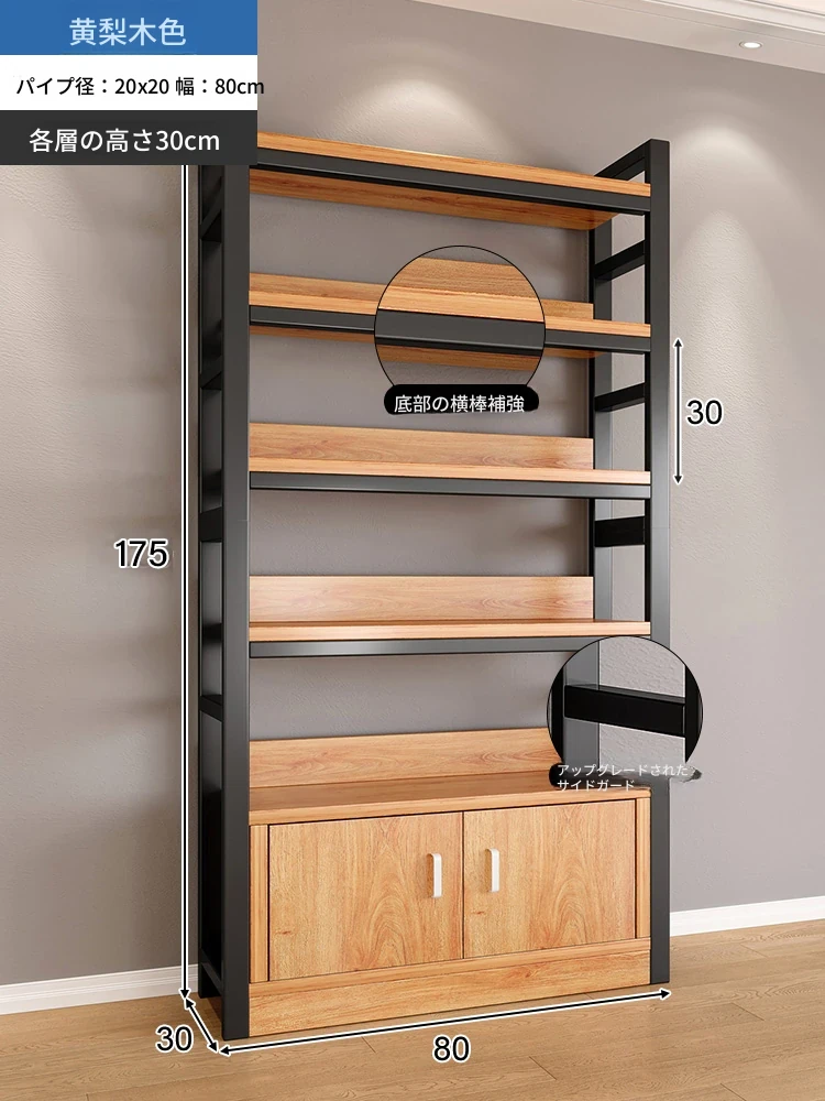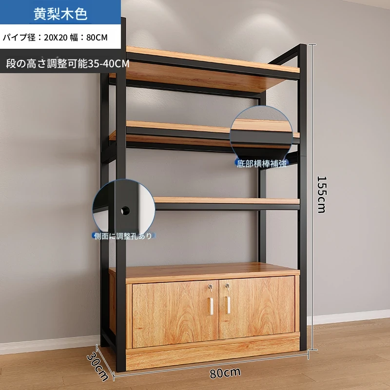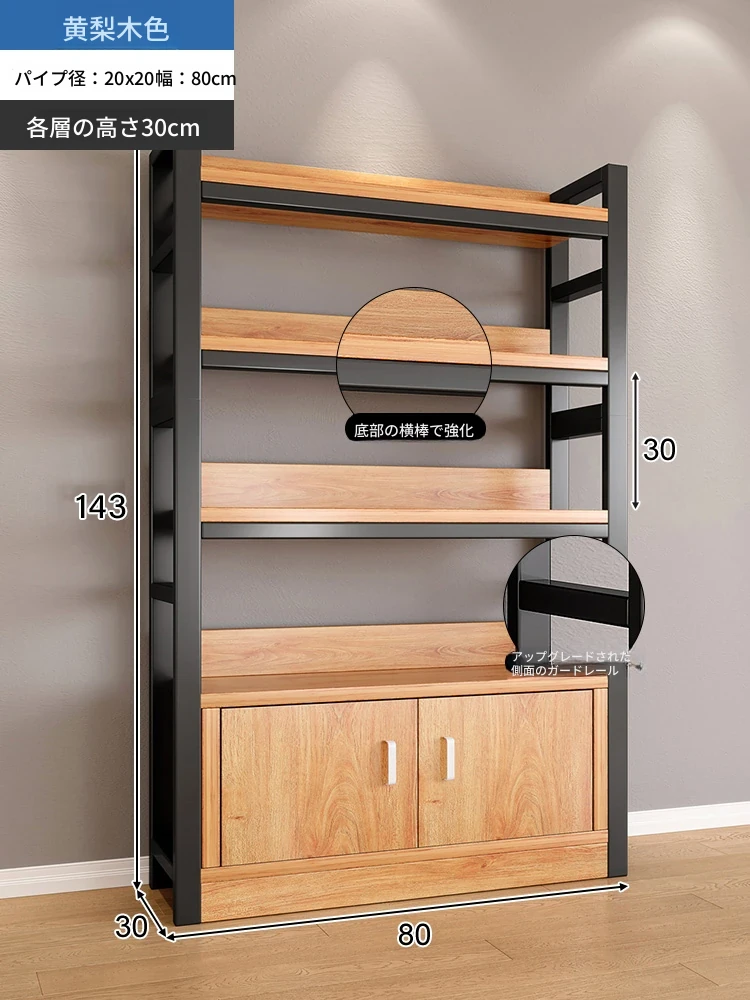 【35-40層高 ダブルボトム横バー】黄梨木+黒フレーム4段棚80CM 【アップグレード扉ロック付き】