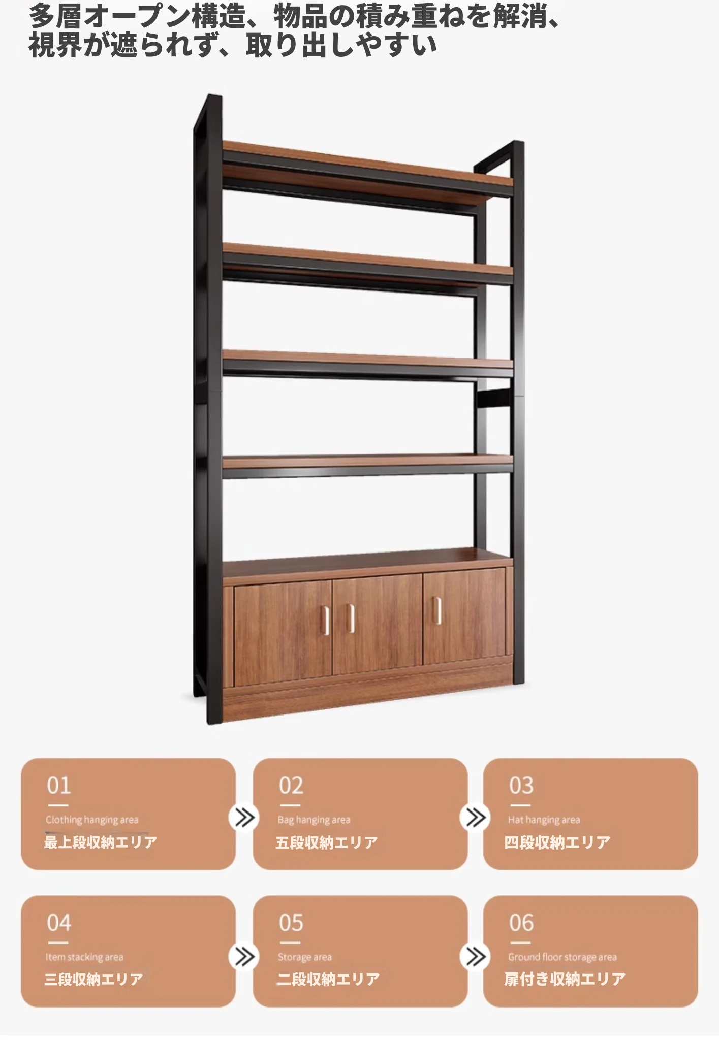 【35-40層高 ダブルボトム横バー】深胡桃+黒フレーム4段棚100CM 【アップグレード扉ロック付き】