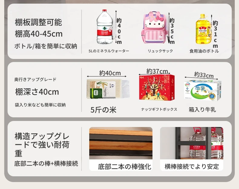家庭用キッチンラック 多層収納棚 電子レンジ・炊飯器用収納ラック スペースを有効活用!バルコニー展示棚にも最適【収納力抜群・おしゃれなデザイン】