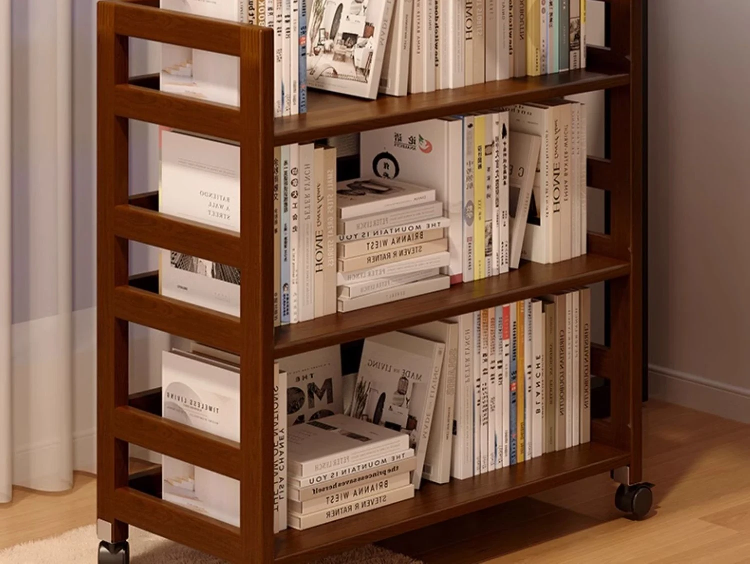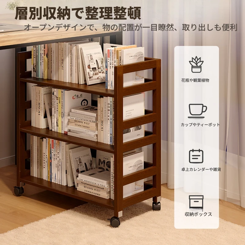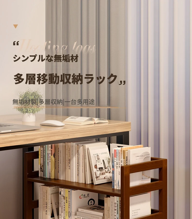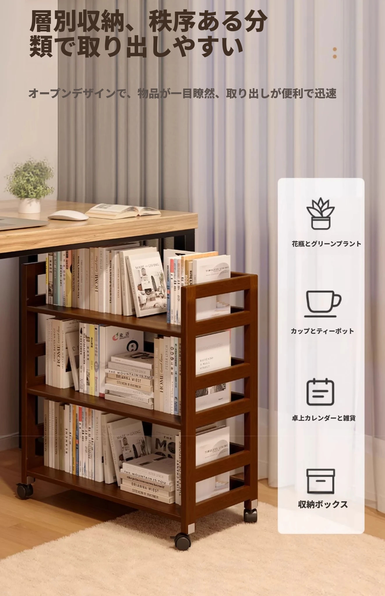 書籍収納ラック 家庭用デスク下移動式マルチレイヤー小型カート 寮用本収納に最適!便利な収納アイテムで、スペースを有効活用して整理整頓を実現!