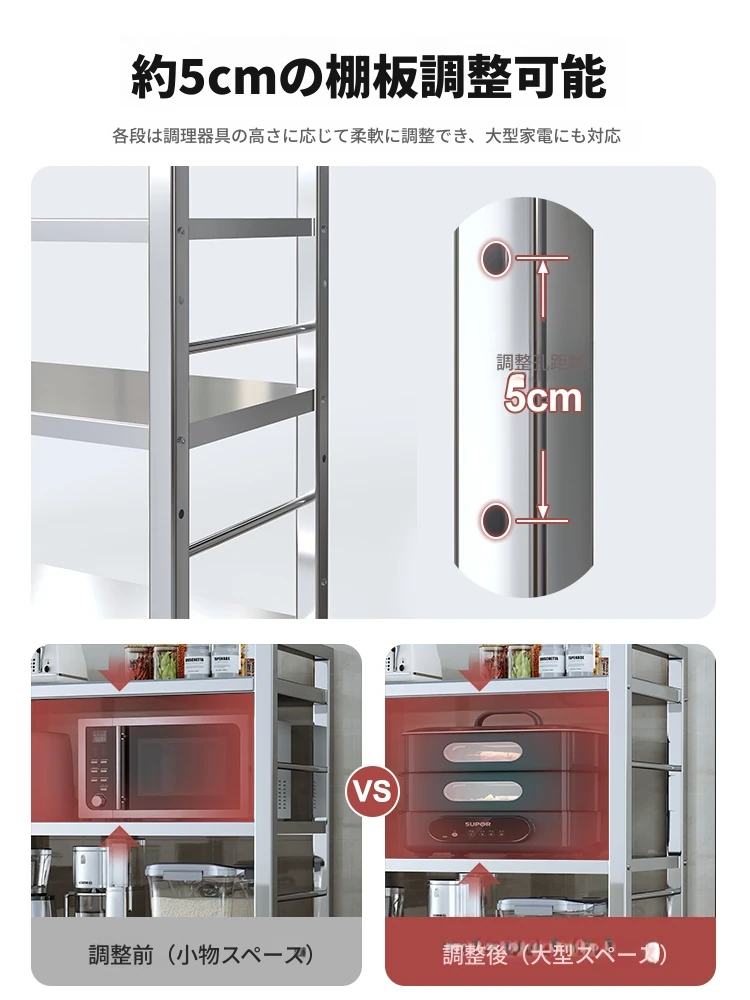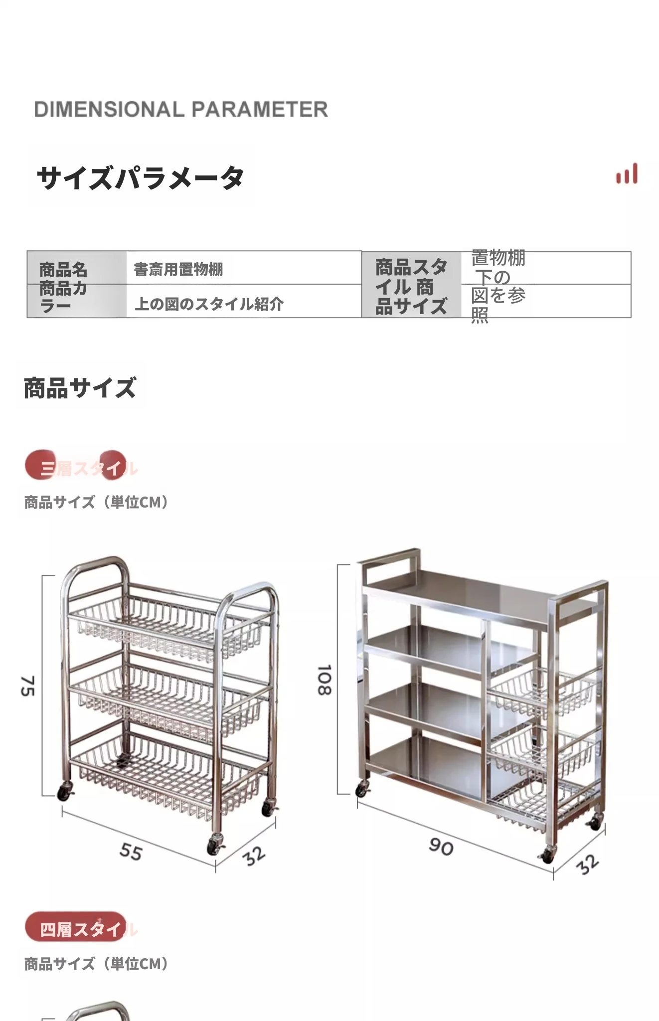 【店長おすすめ⭐主図ステンレスモデル】四層55CM二板二バスケット