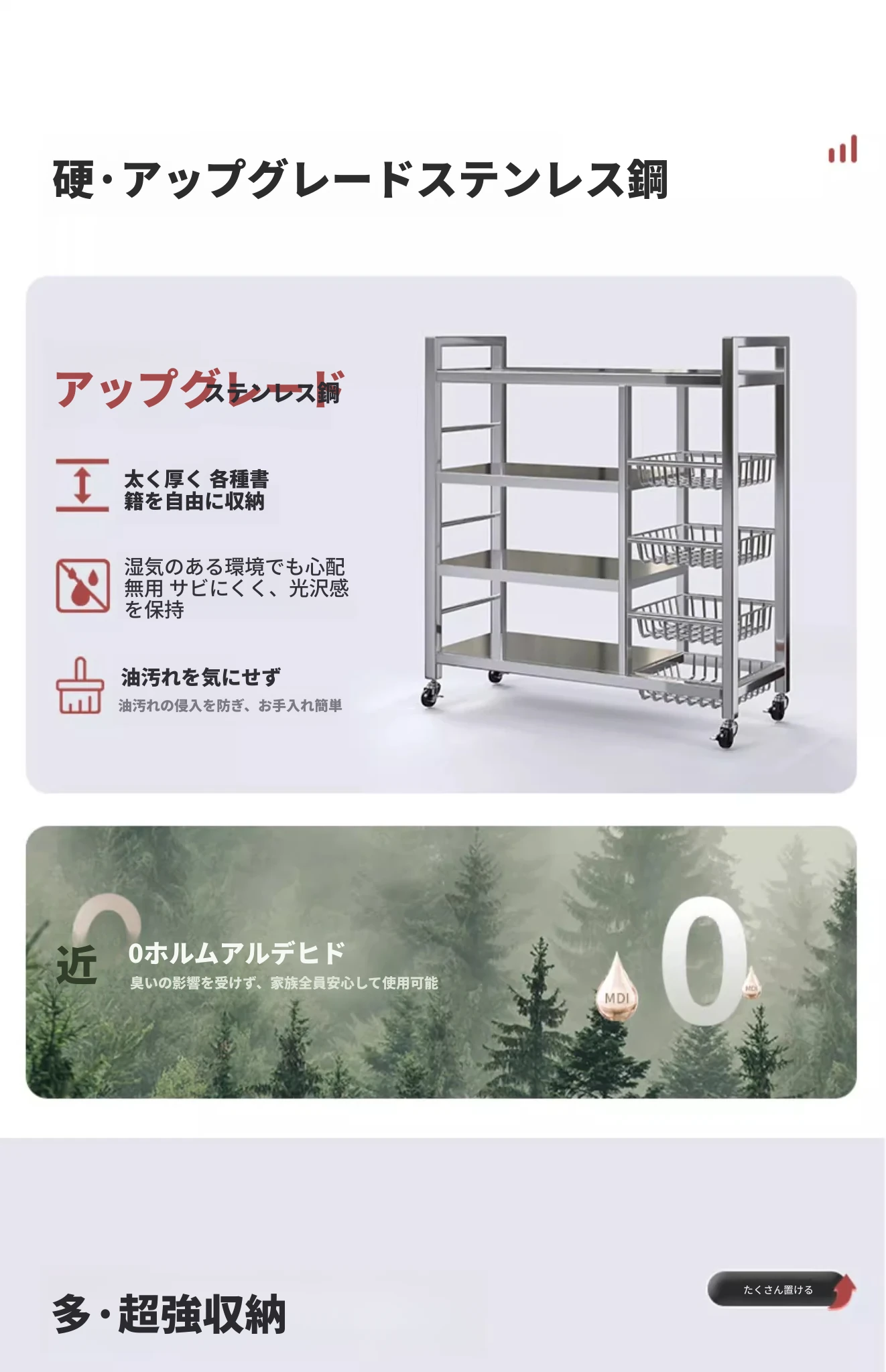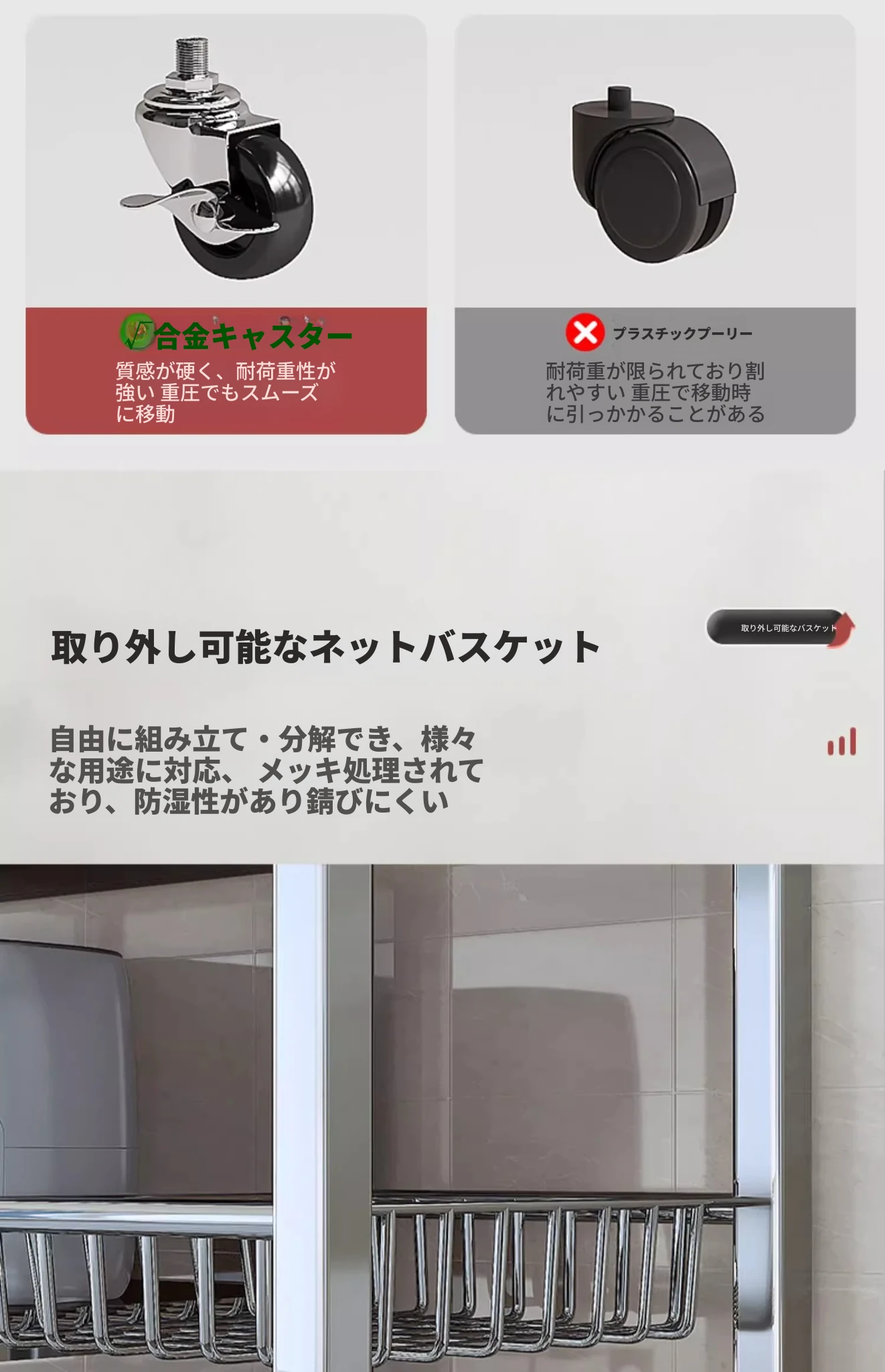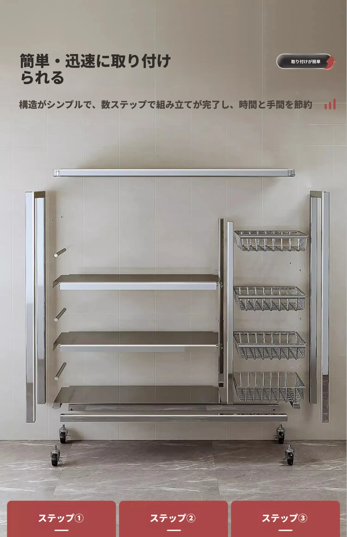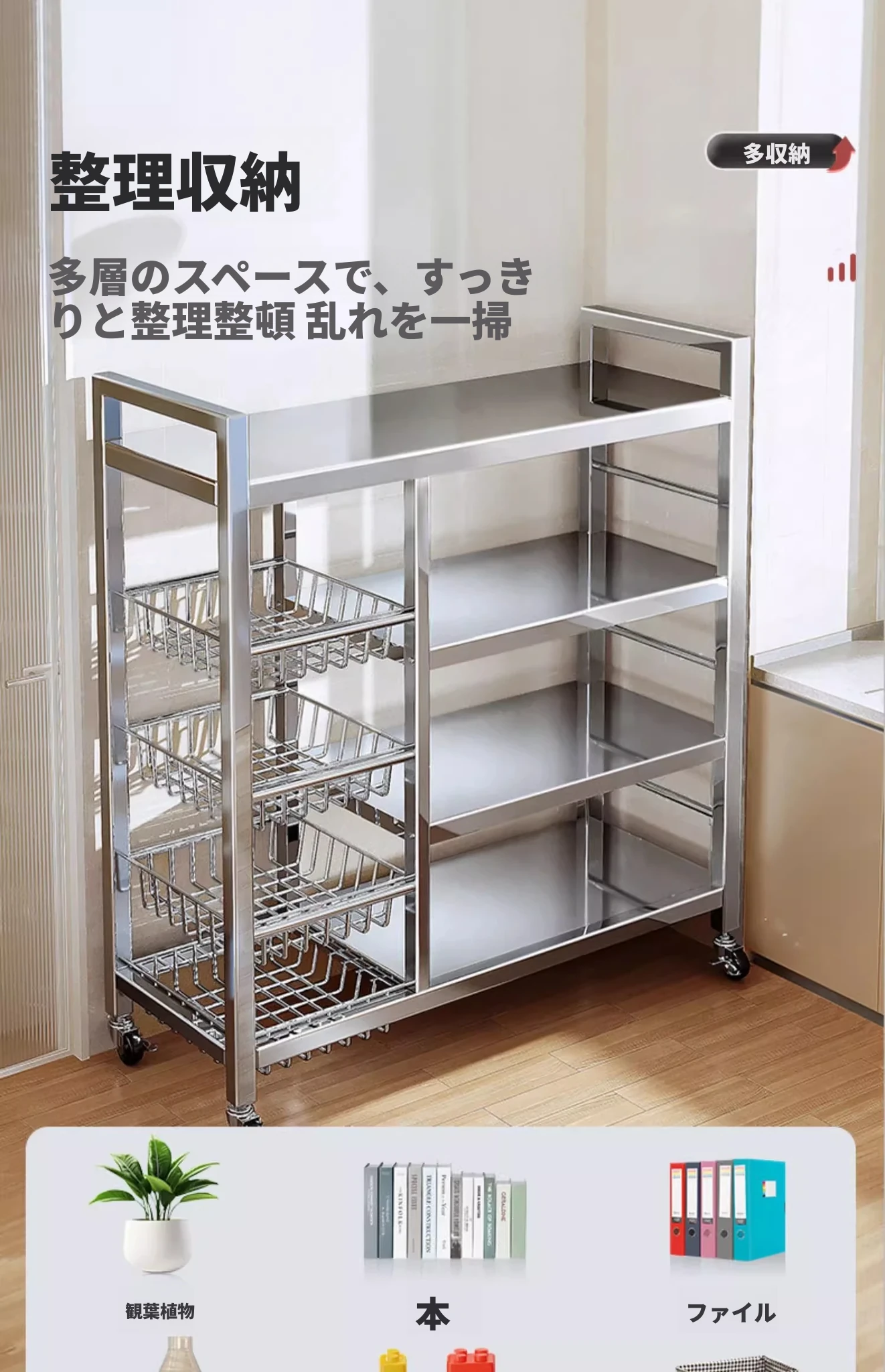 【高品質ステンレス】太く強化された四層80CM❤️四板三バスケット
