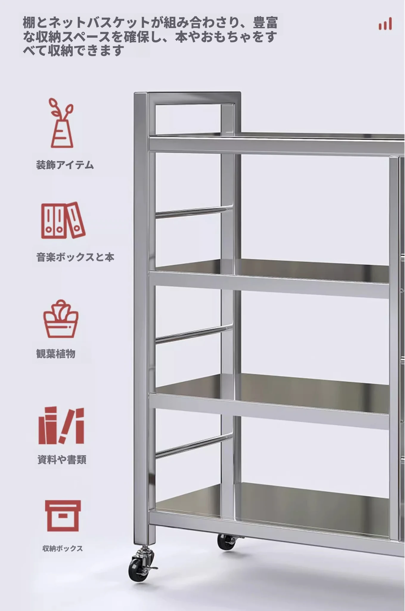 【高品質ステンレス】太く強化された四層90CM❤️四板三バスケット