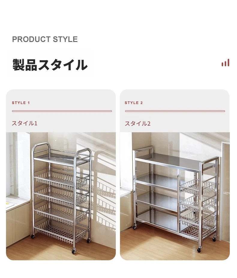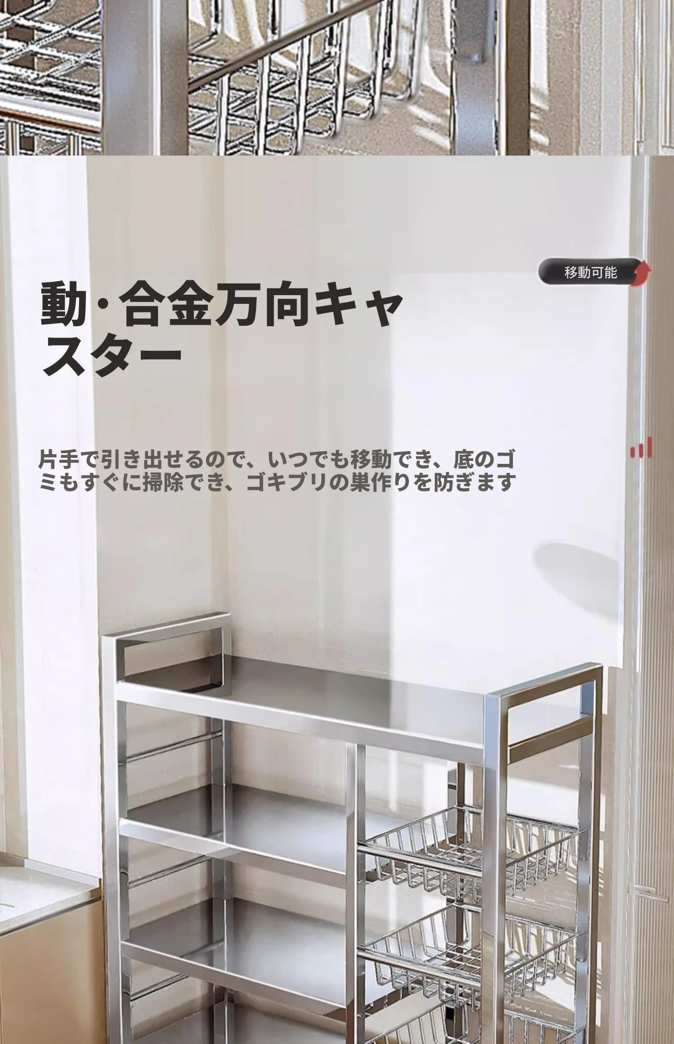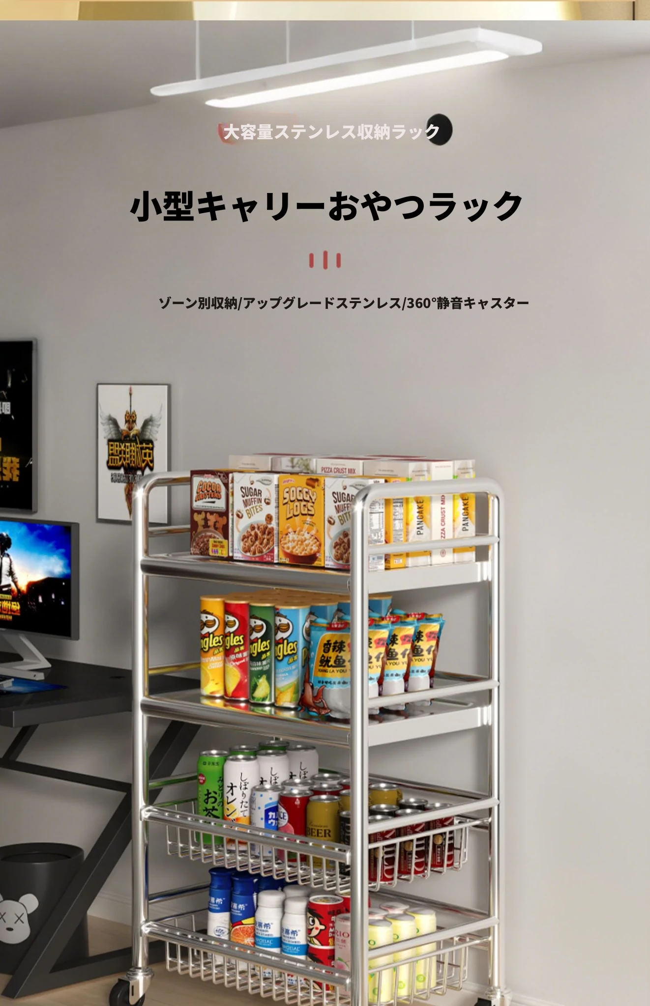 家庭用ステンレス製スナックカート - 多機能収納ラック!地面に置ける多層デザインで、キッチンやリビングに最適な収納ソリューション。おしゃれで便利なアイテムで、すっきりとした空間を実現します!