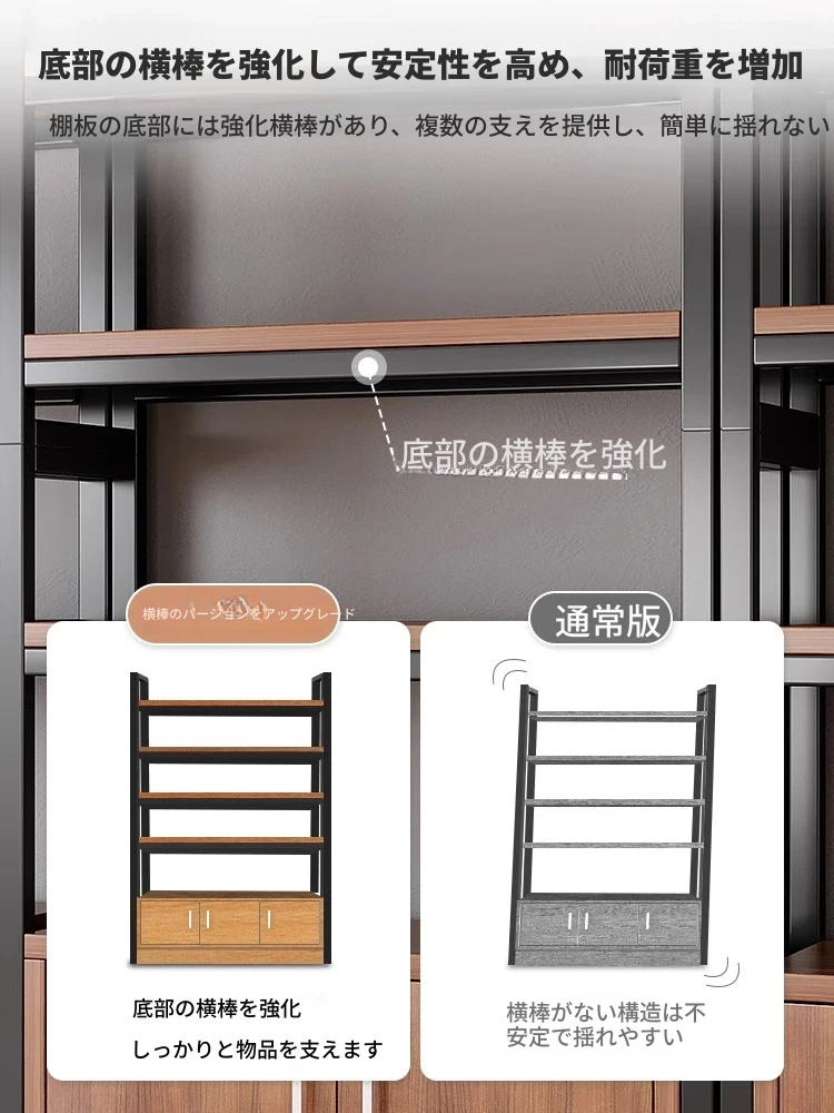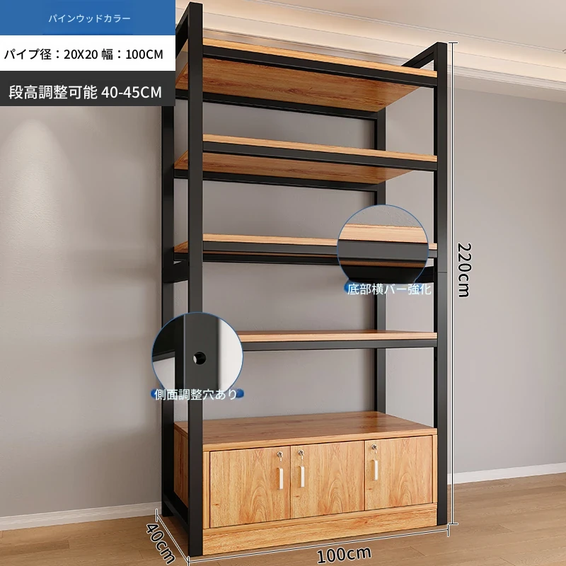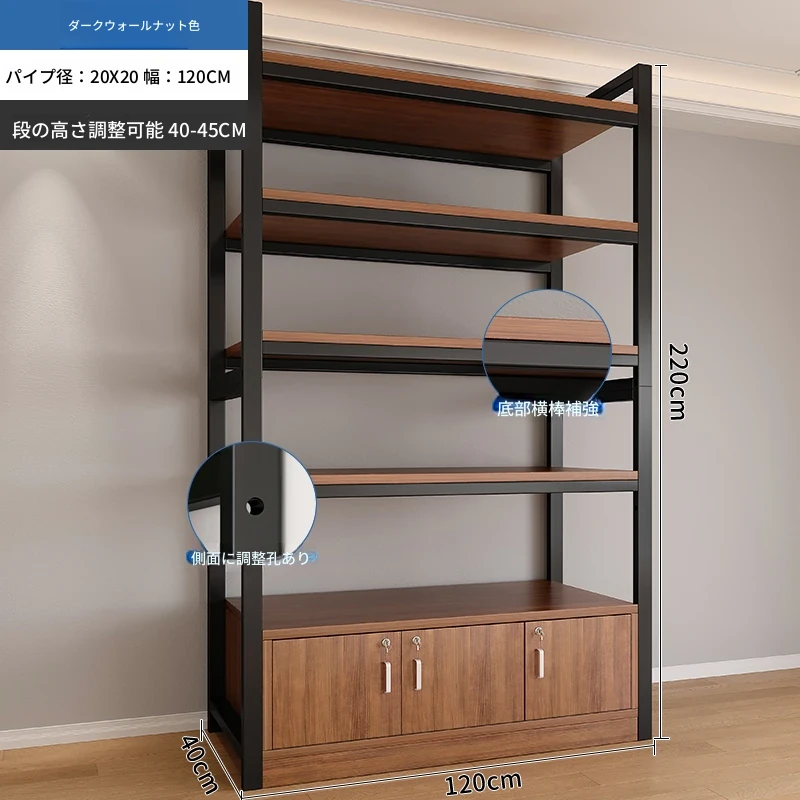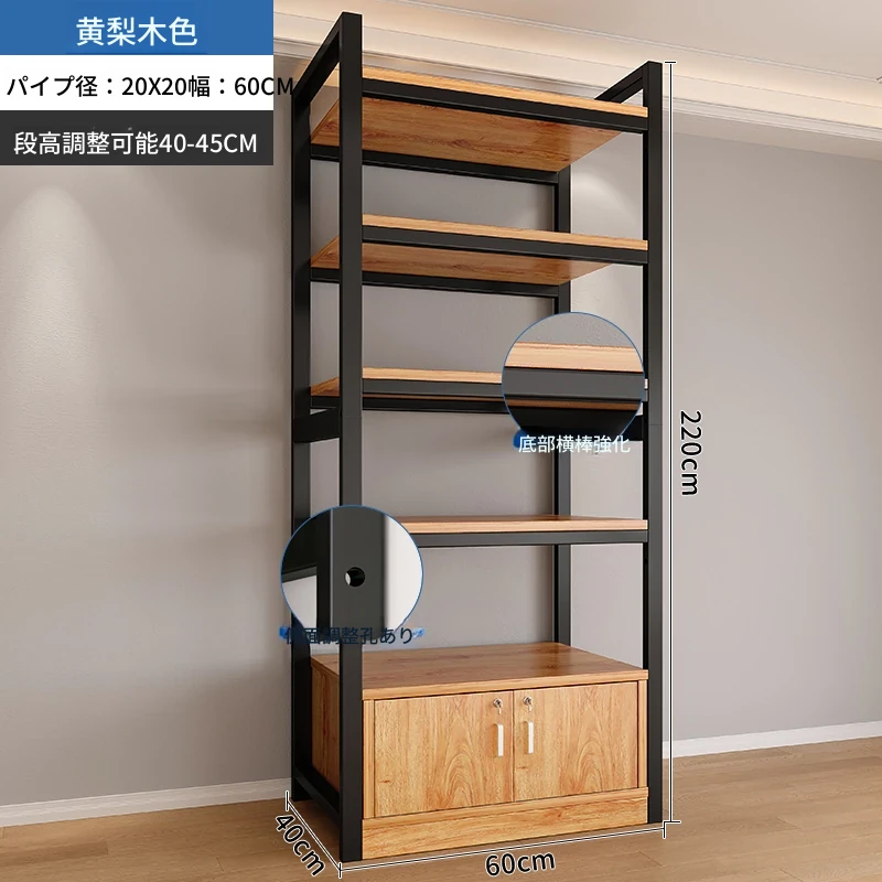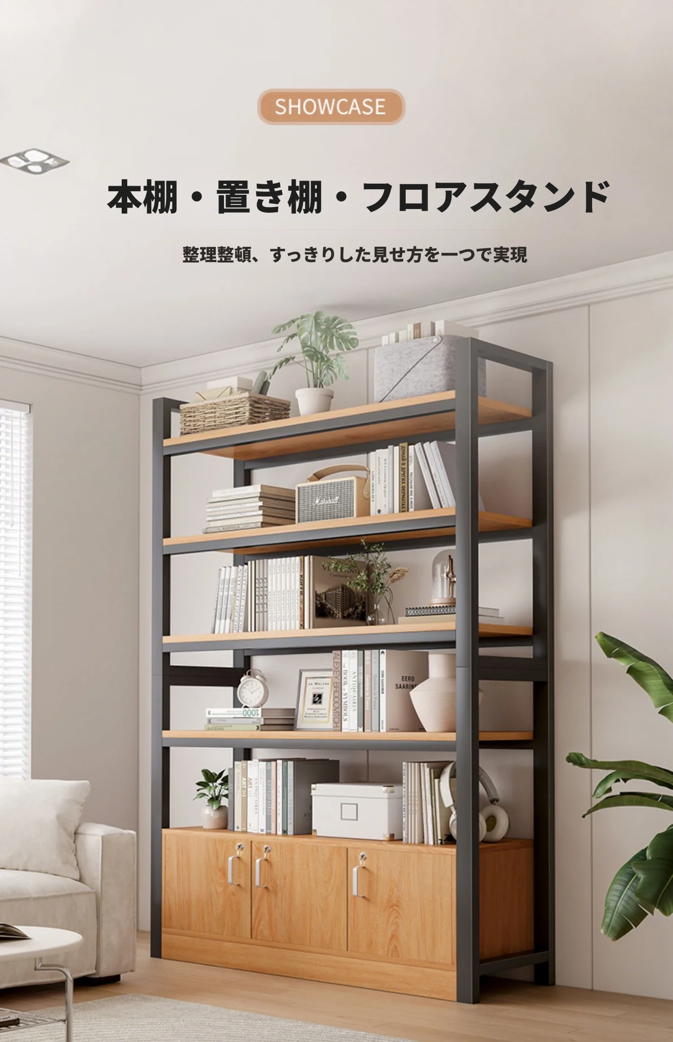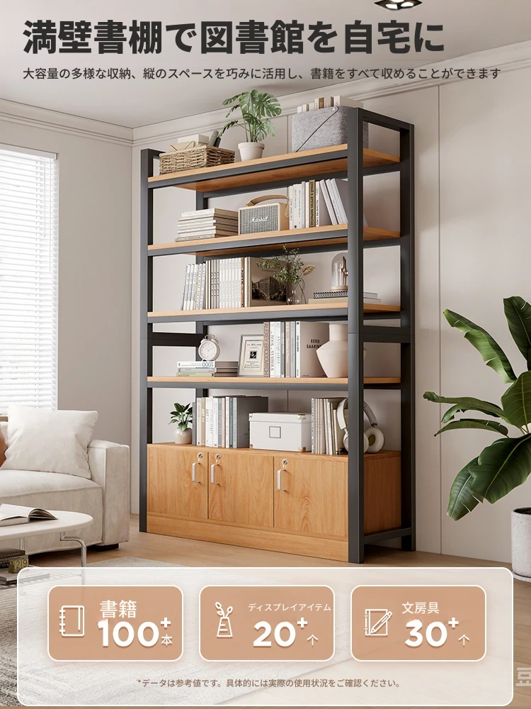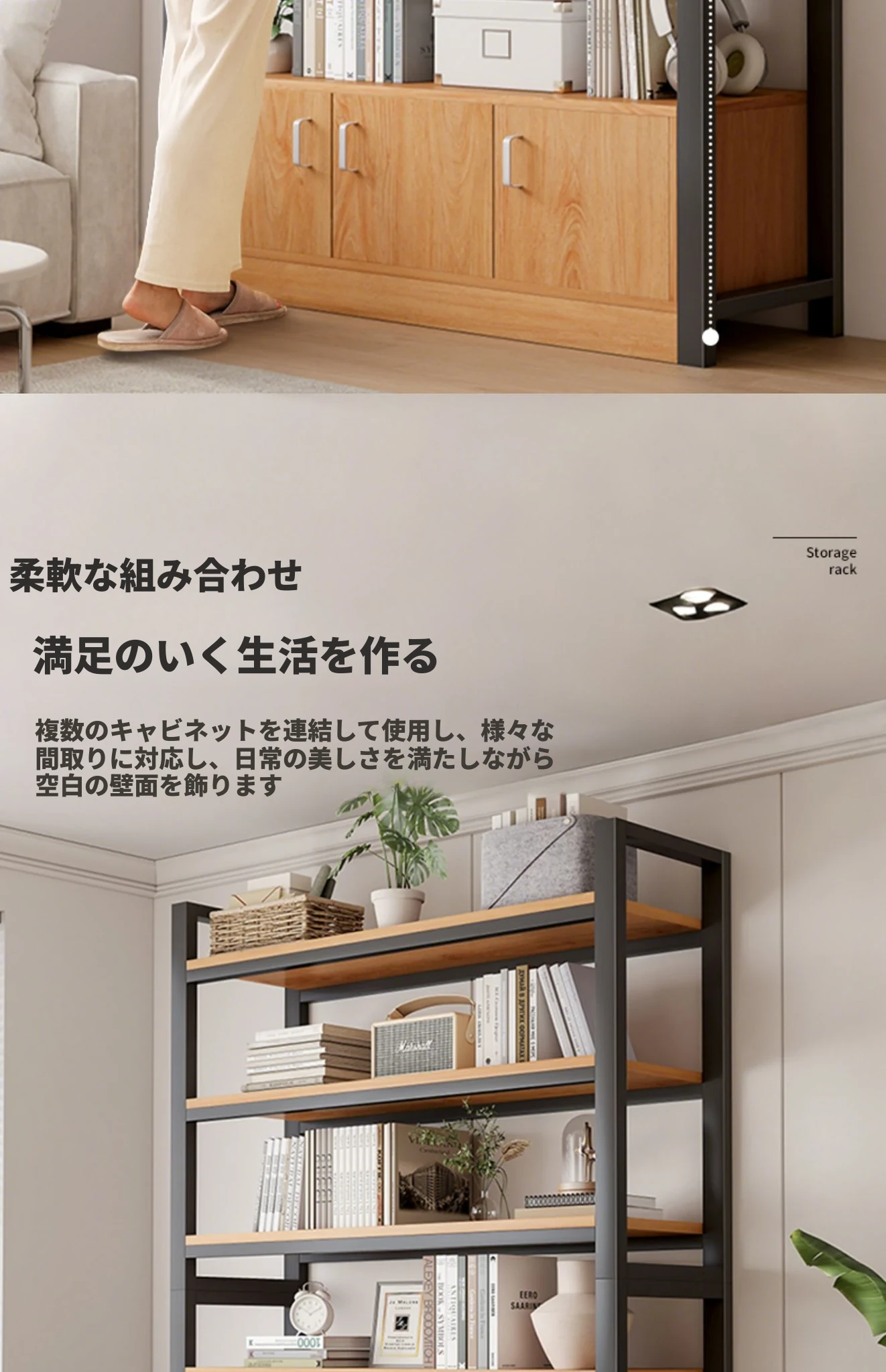 リビング用フロアブックシェルフ収納キャビネット一体型壁掛け多層スチールウッドシェルフ、鍵付きで安心の展示ラック!おしゃれで機能的な収納を実現し、あなたの空間を魅力的に演出します。