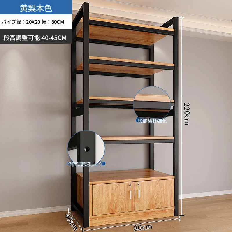 【40-45層高 加深加高】バンブーウッド+ブラックフレーム五段棚80x40x220 【アップグレード扉ロック付き】