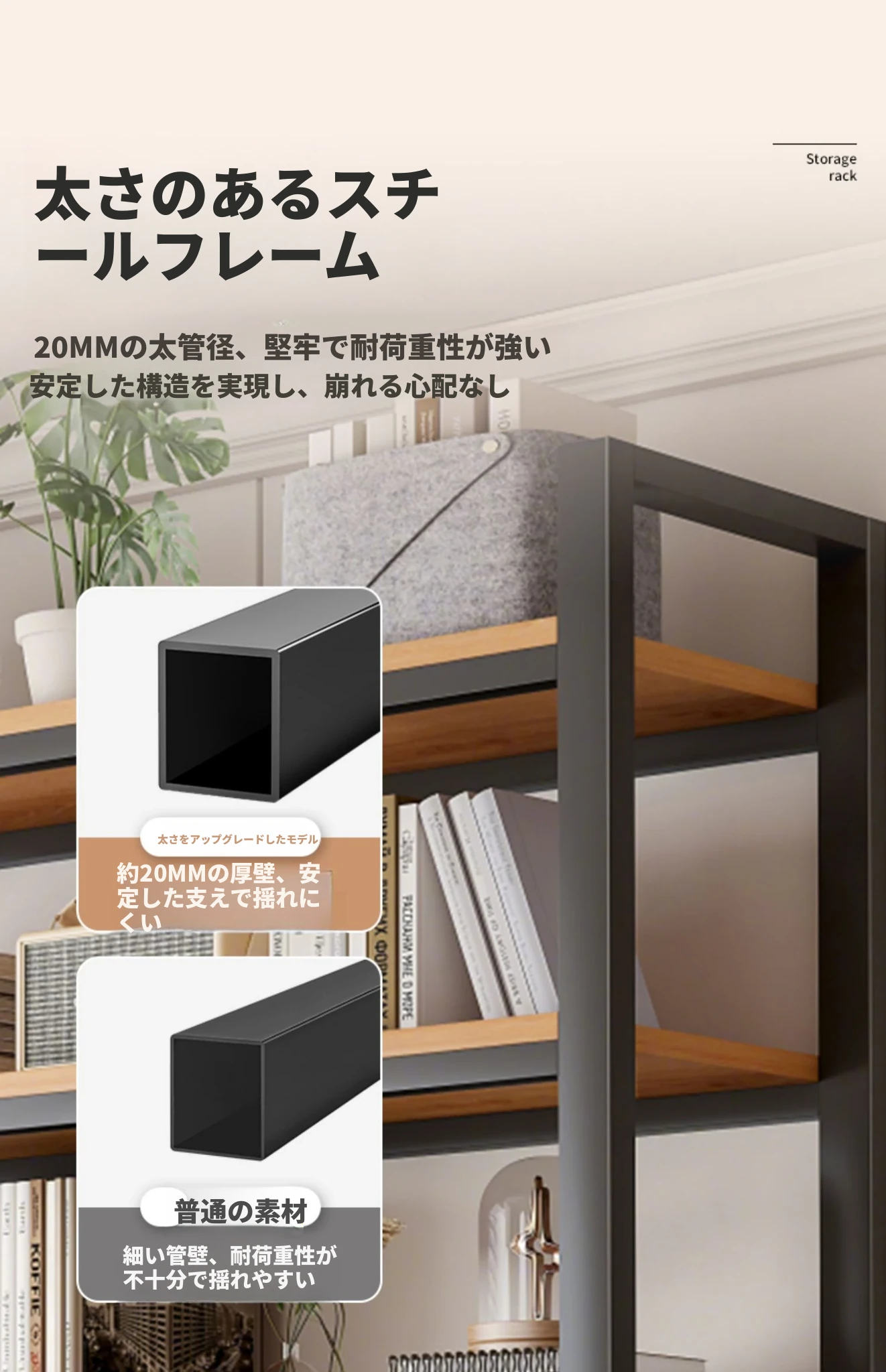 【40-45層高 加深加高】バンブーウッド+ブラックフレーム四段棚60x40x180 【アップグレード扉ロック付き】