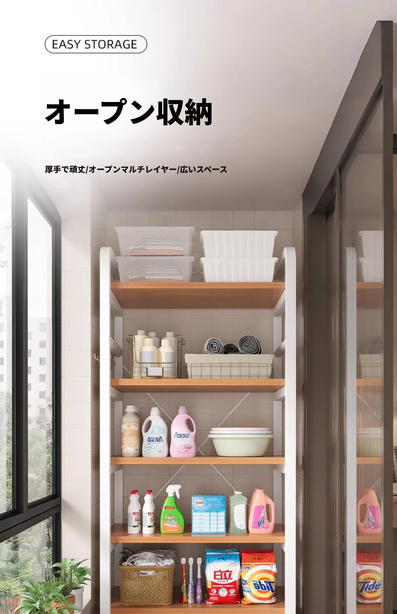 家庭用バルコニー収納ラック|多層設計でスペースを有効活用|キッチンや壁際に最適なシンプルな棚|雑貨や日用品をスッキリ整理!収納力抜群の便利アイテム!