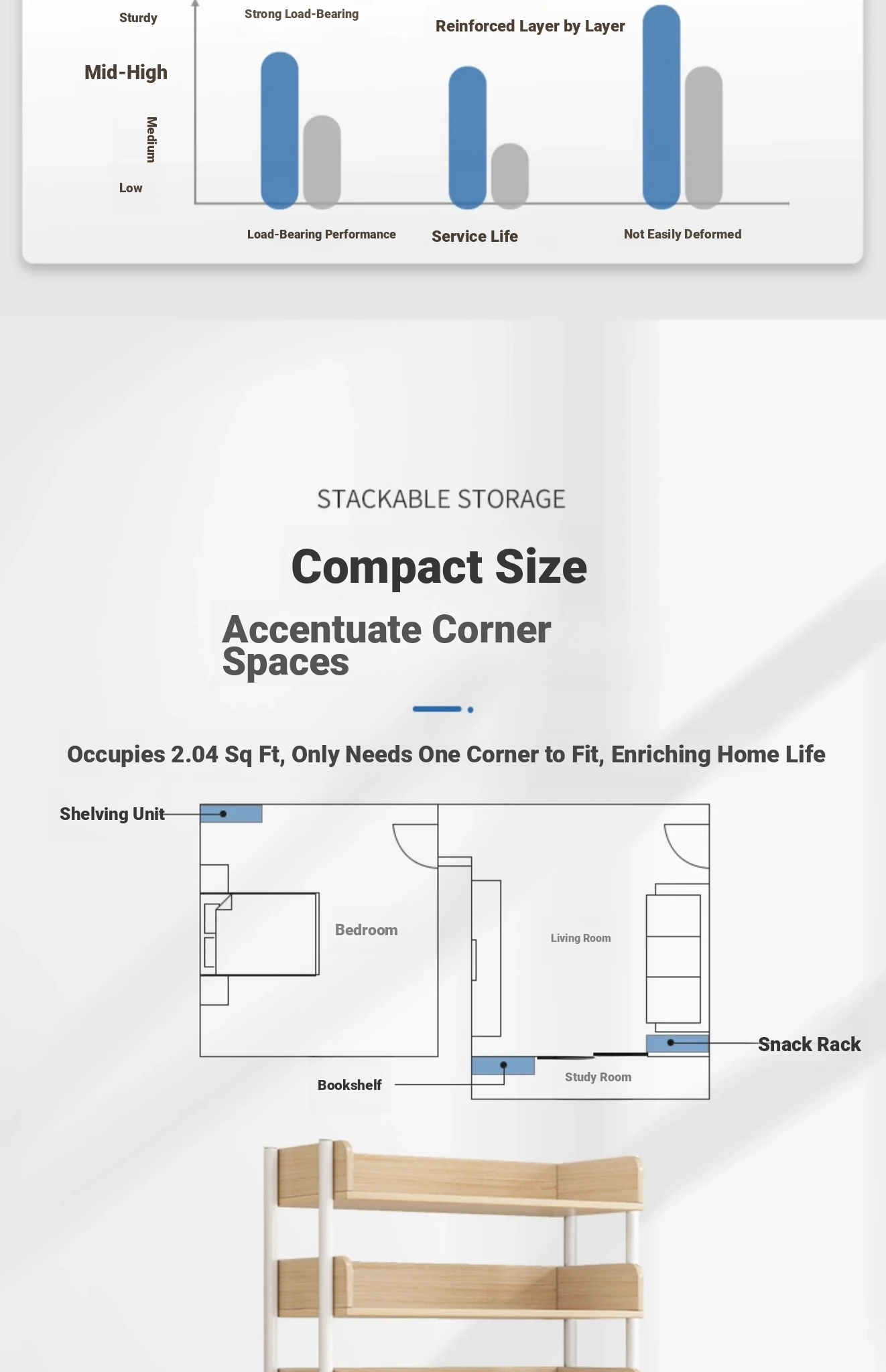 【Main Image Style】43Cm 3-Tier - Brushed Oak Finish(★Maximize Small Spaces)