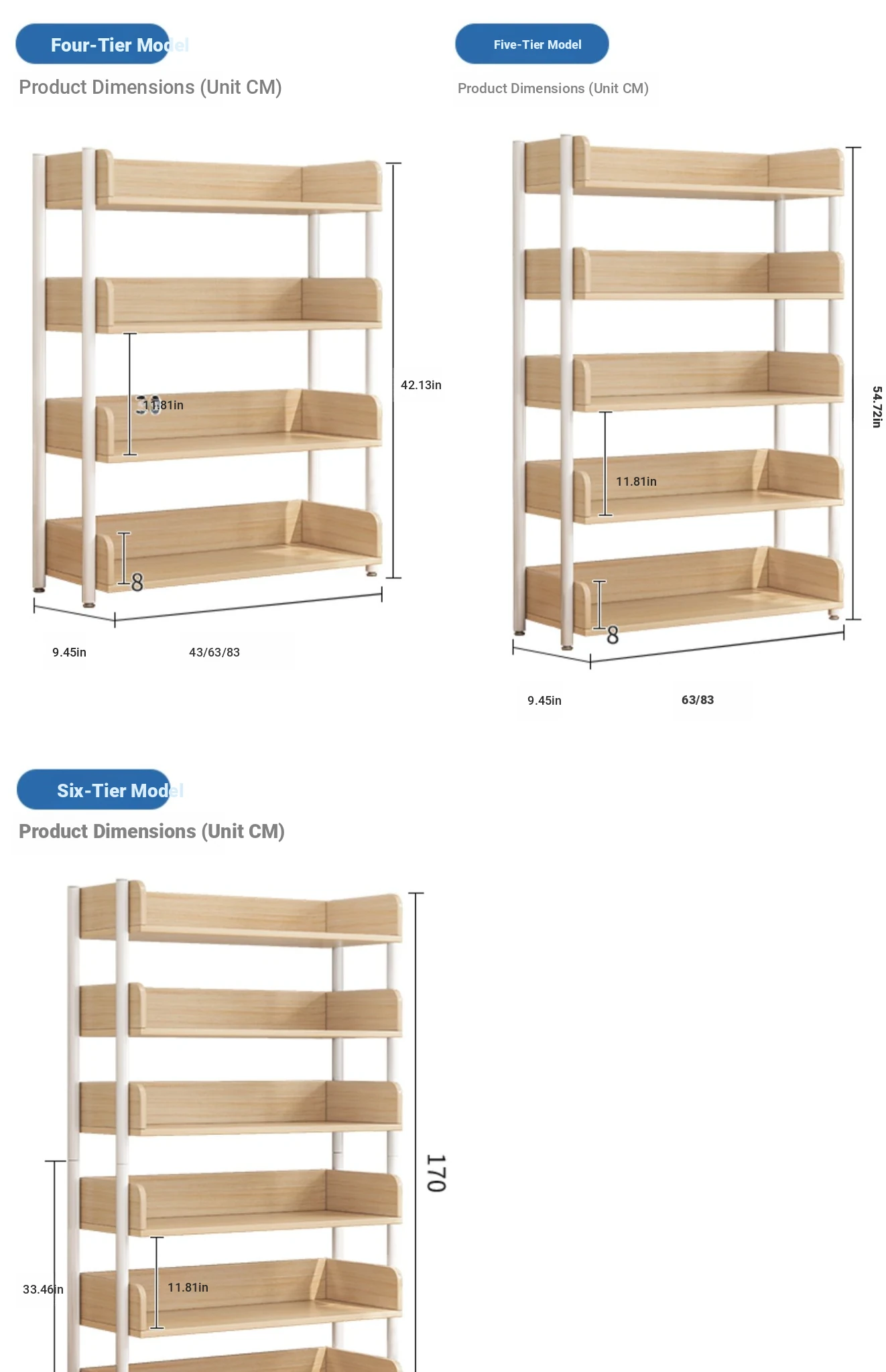 【Main Image Style】63Cm 3-Tier - Brushed Oak Finish(★)