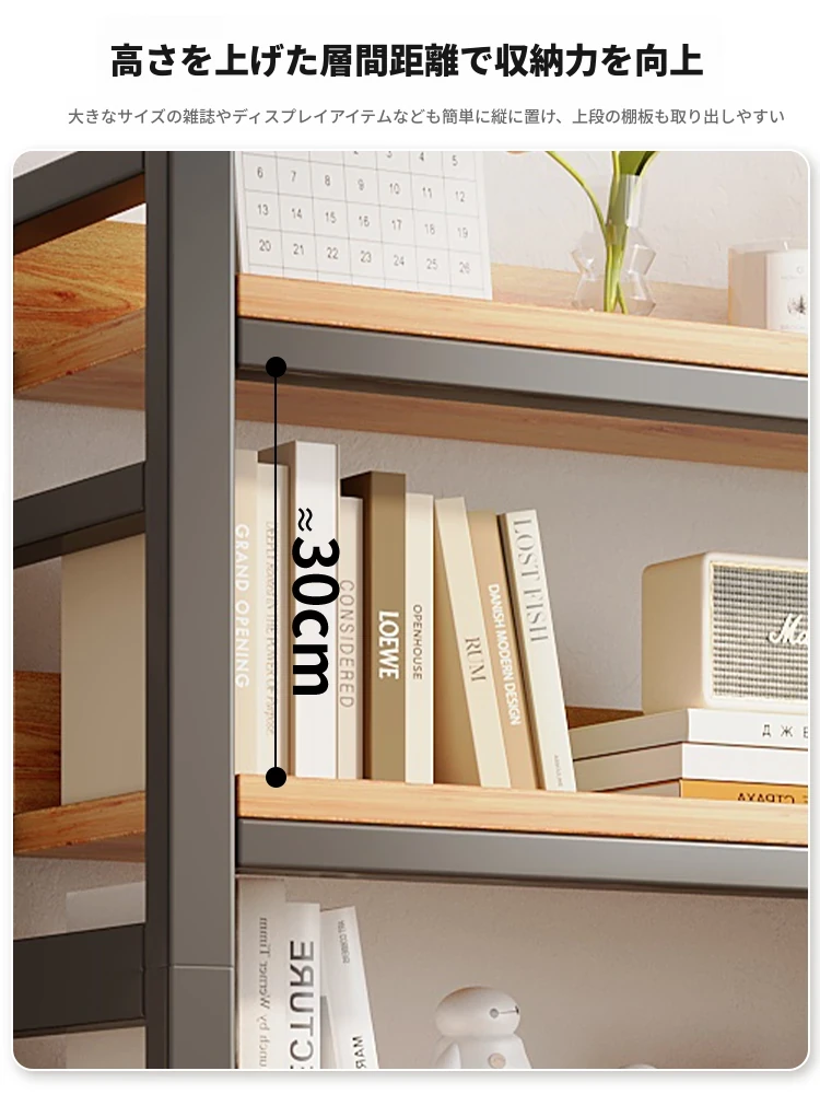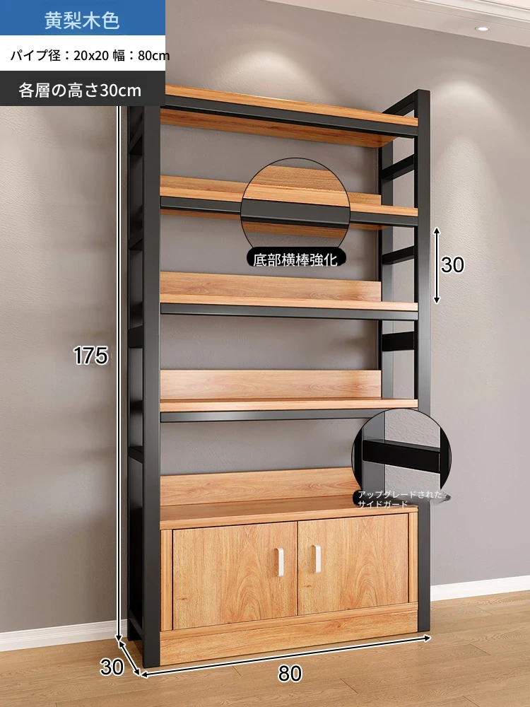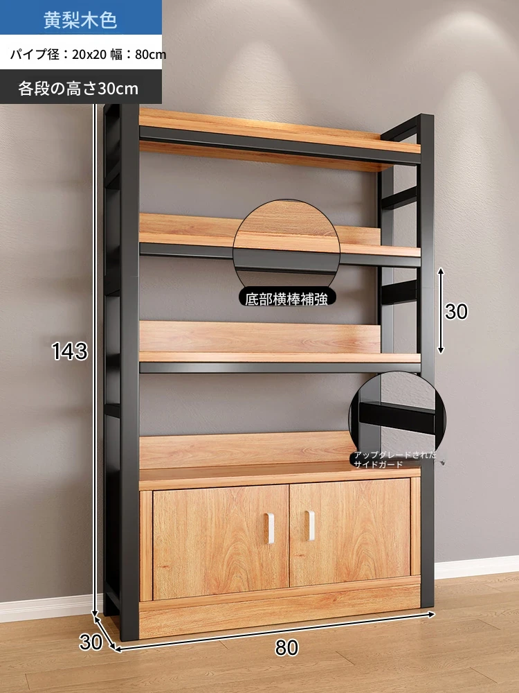 【30層高 アップグレードサイドガード】パインウッド+黒フレーム五段80CM