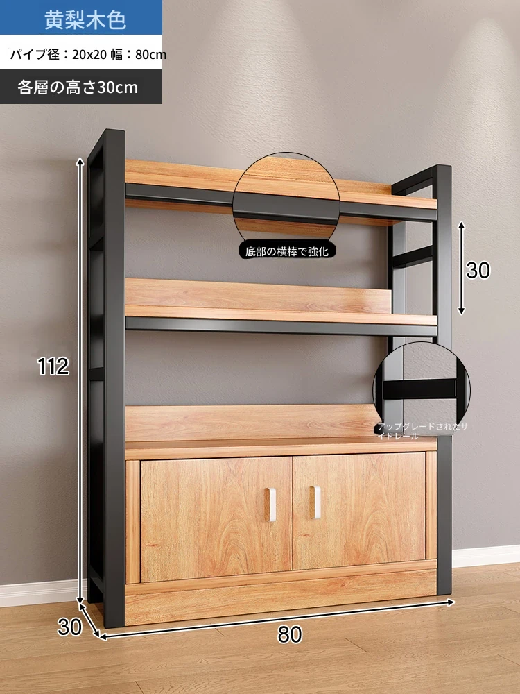 【30層高 アップグレードサイドガード】パインウッド+黒フレーム三段80CM