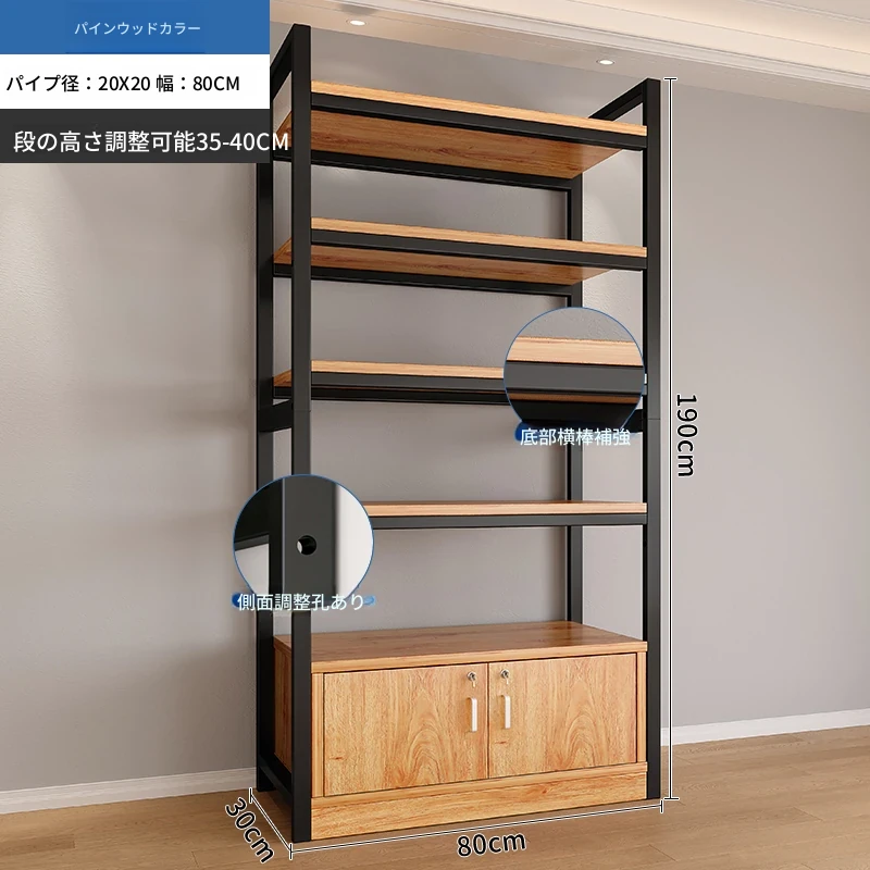 【35-40層高 二重底横棒】パインウッド+黒フレーム五段ラック80CM