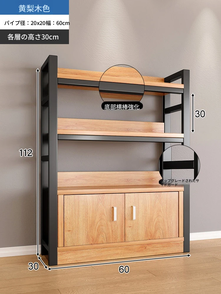 【30層高 アップグレードサイドガード】パインウッド+黒フレーム三段60CM