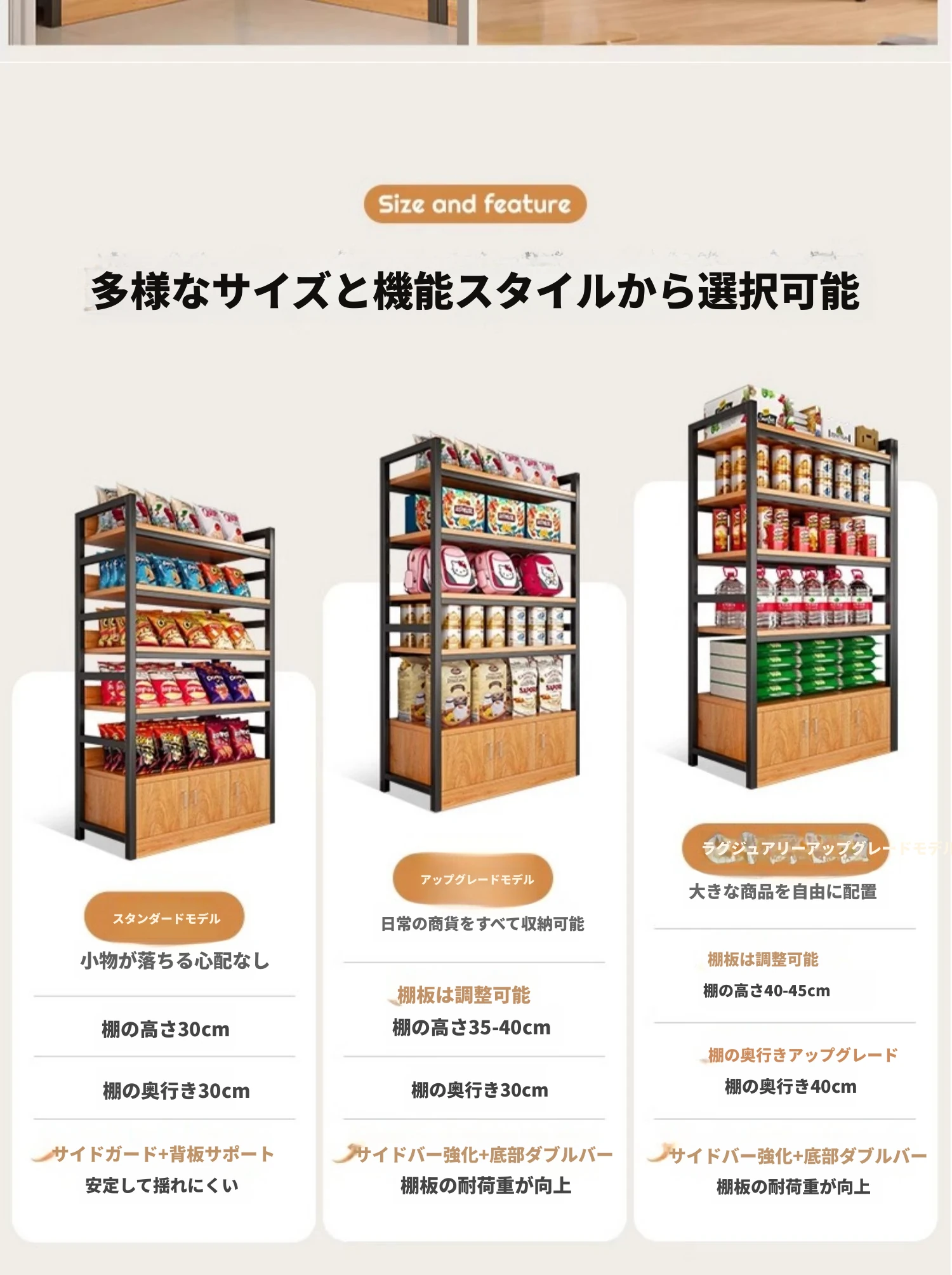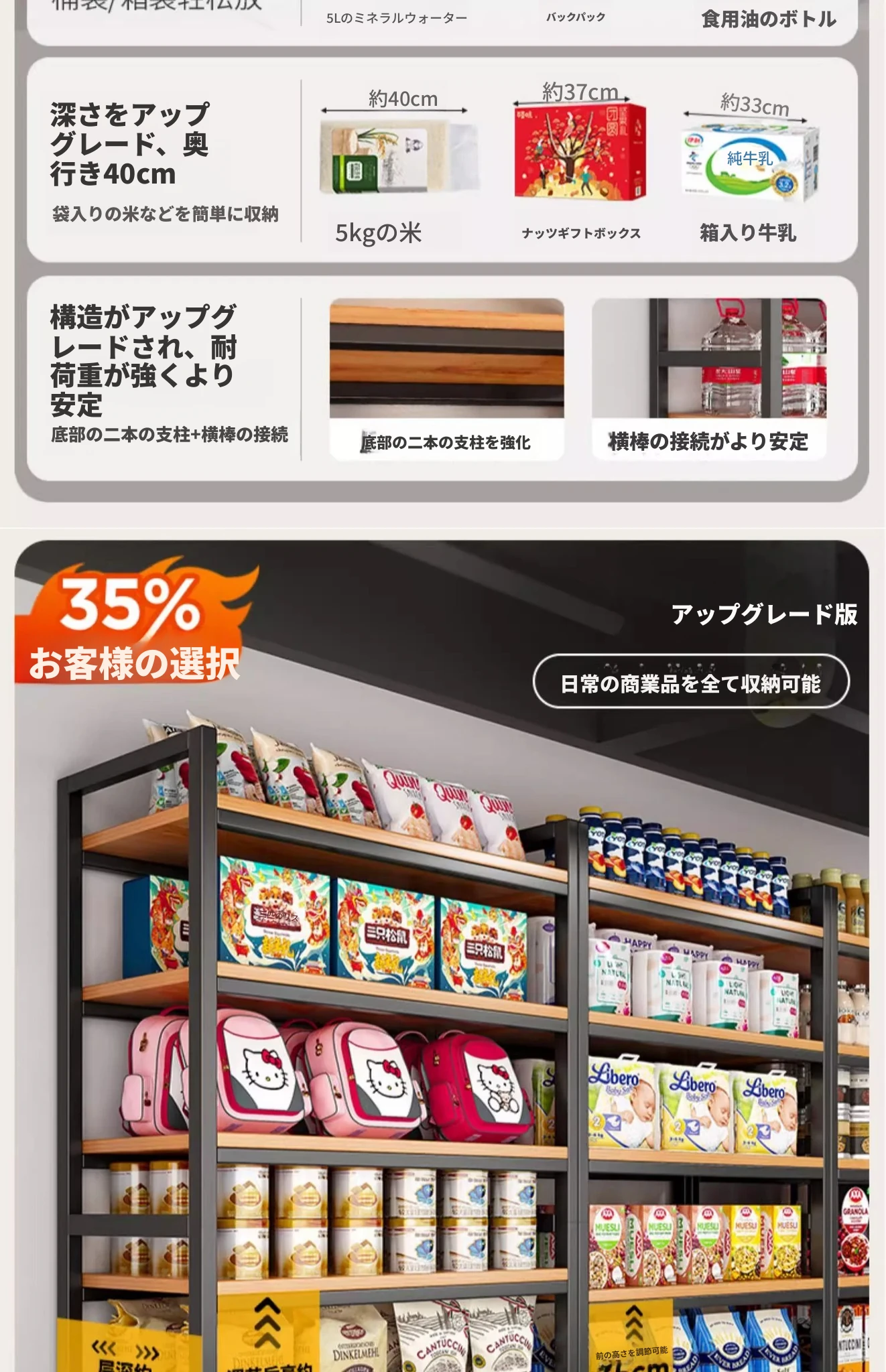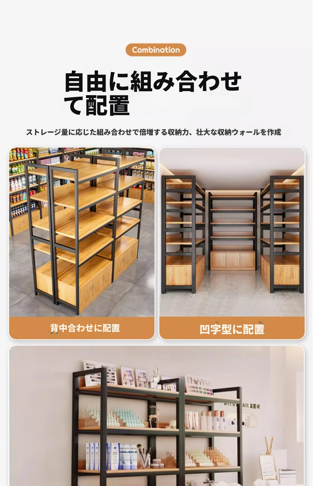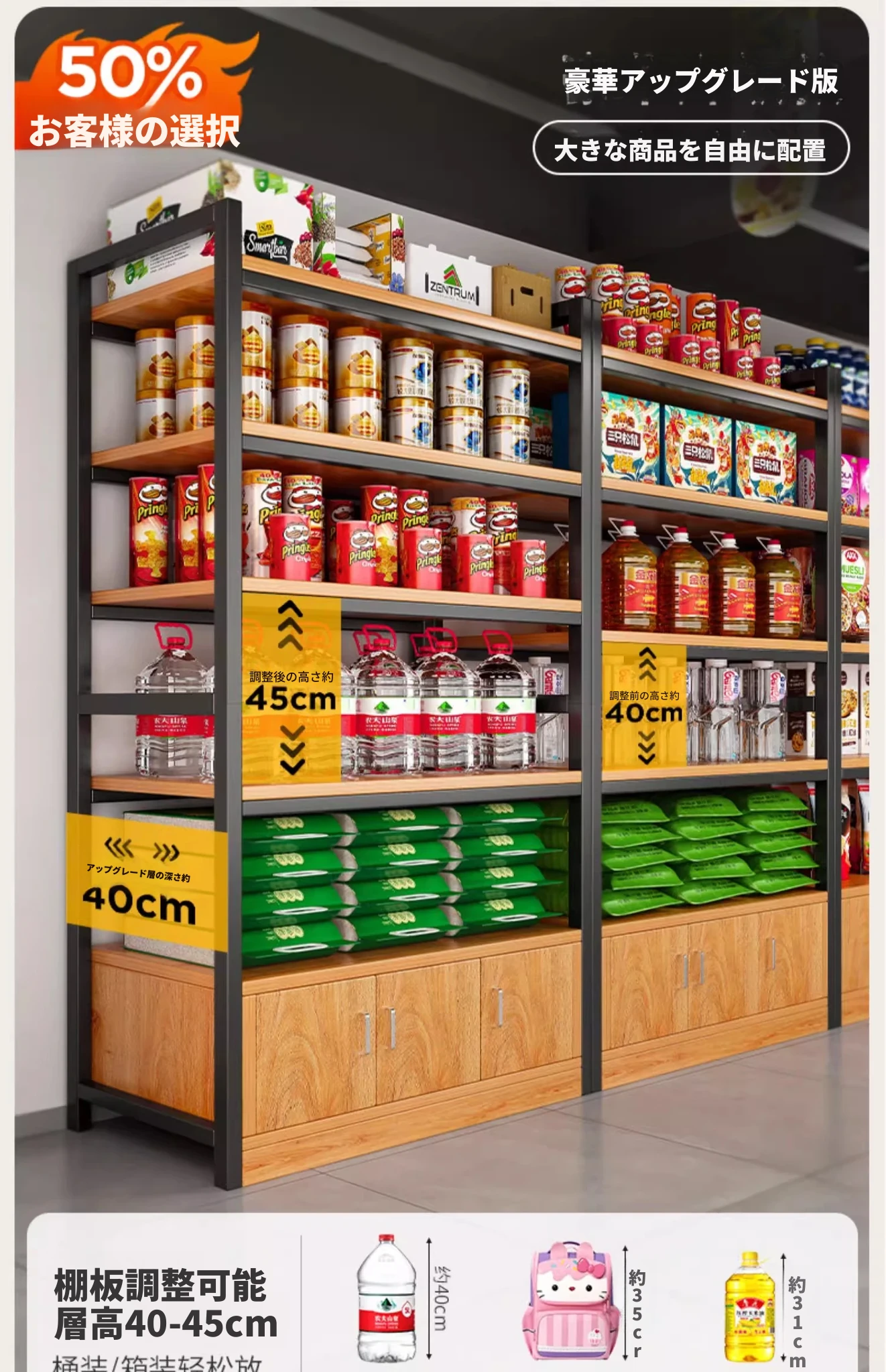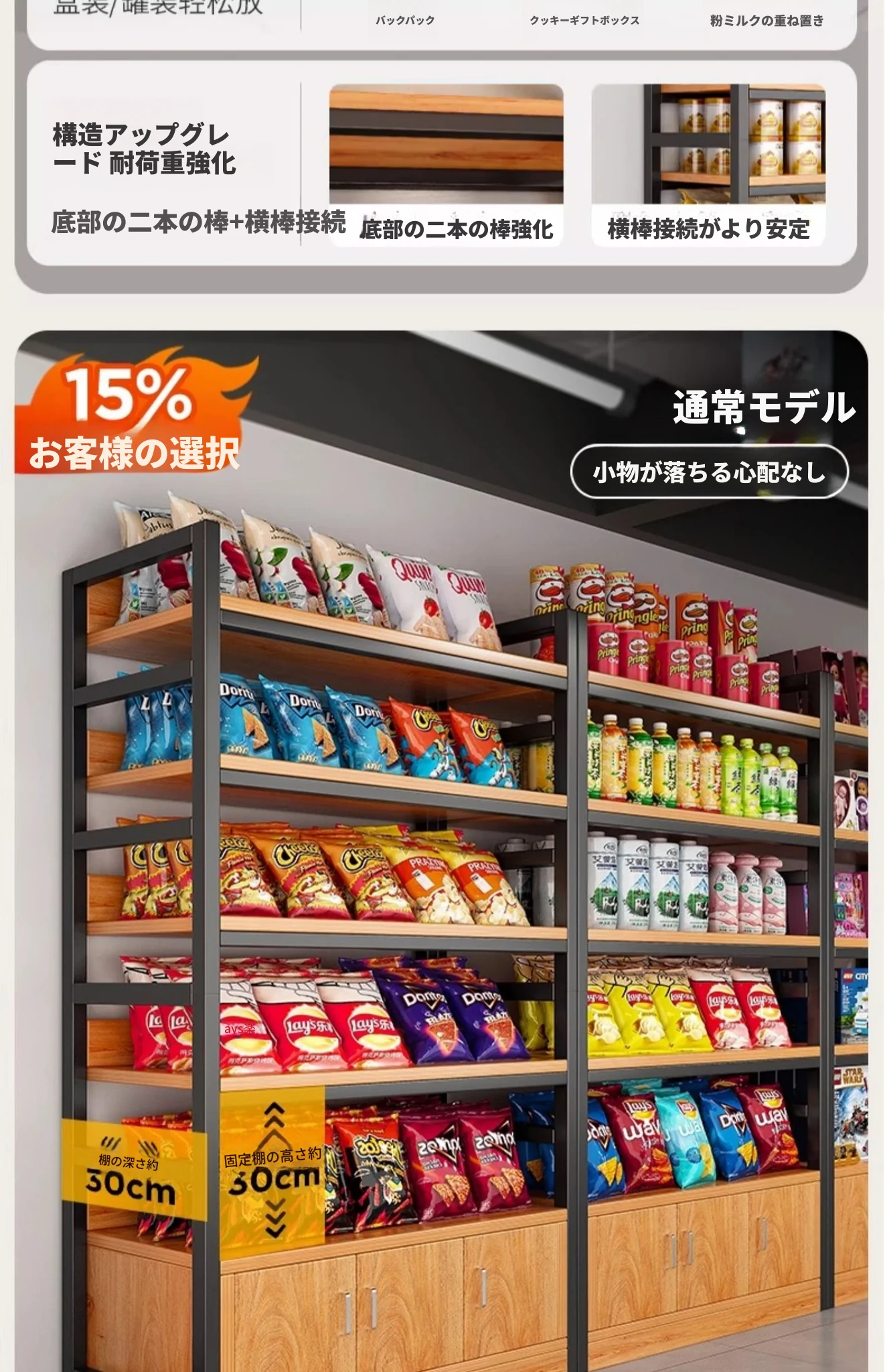 家庭用の多段収納ラック|壁に寄せて設置できる便利な収納棚|スーパーマーケットのディスプレイにも最適|バルコニーや倉庫での展示収納にぴったり!おしゃれで機能的な収納解決策!