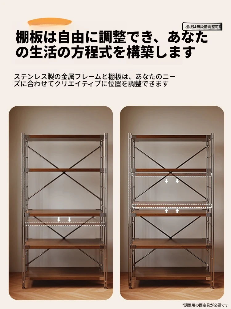 (太い無垢ステンレス 50年壊れない)【41深】5段-イエローベニア色80x41x150