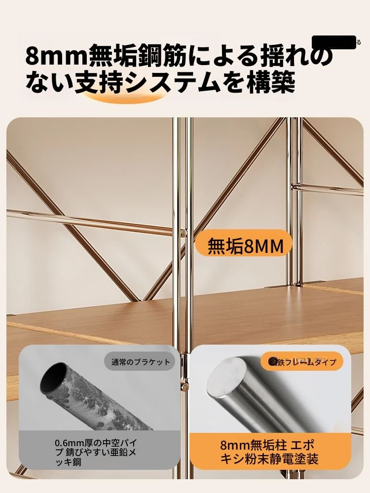(太い無垢ステンレス 50年壊れない)5段-イエローベニア色80x31x150