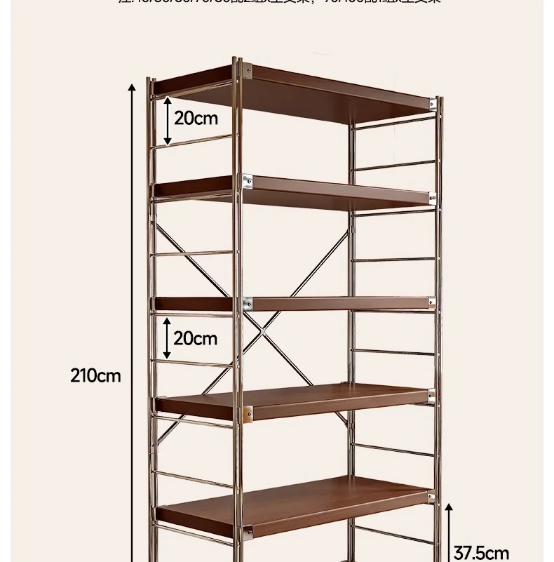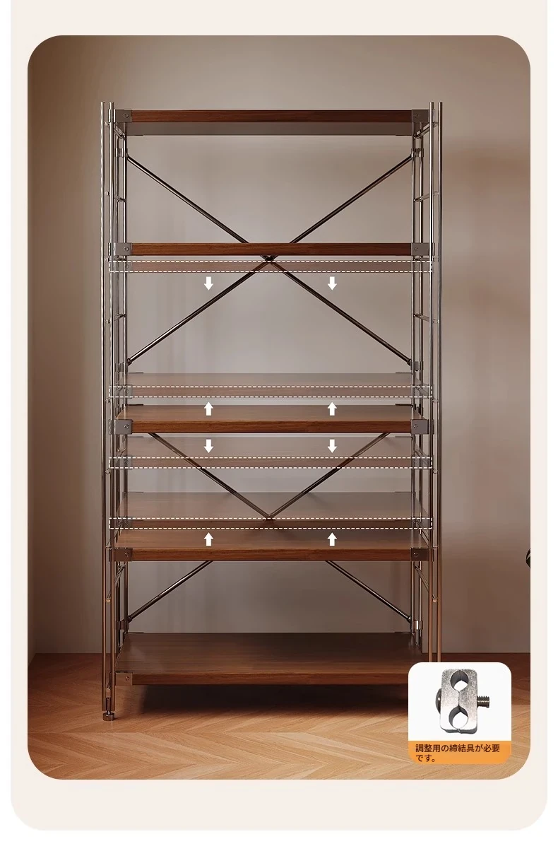 (太い無垢ステンレス 50年壊れない)5段-ウォールナット色80x31x170