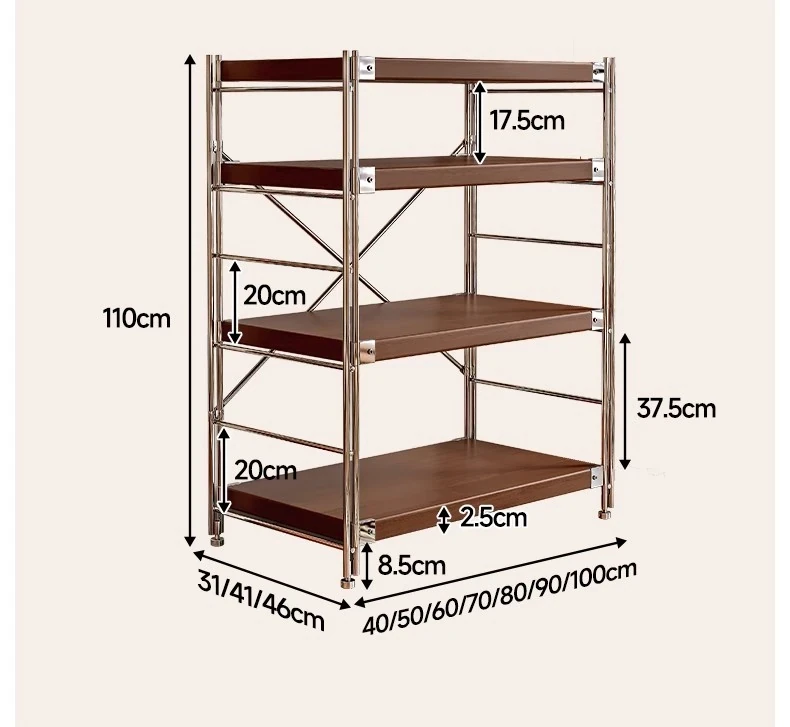 (太い無垢ステンレス 50年壊れない)4段-ウォールナット色40x31x110