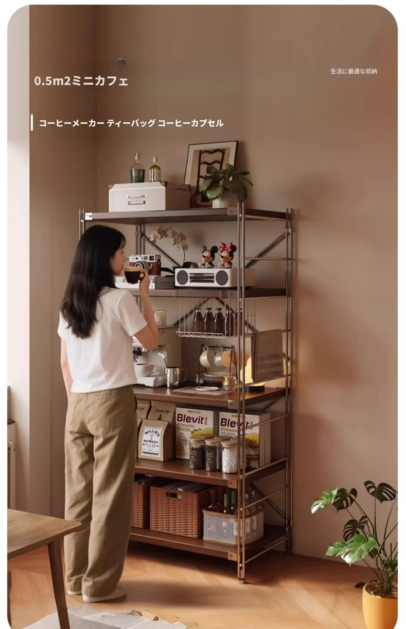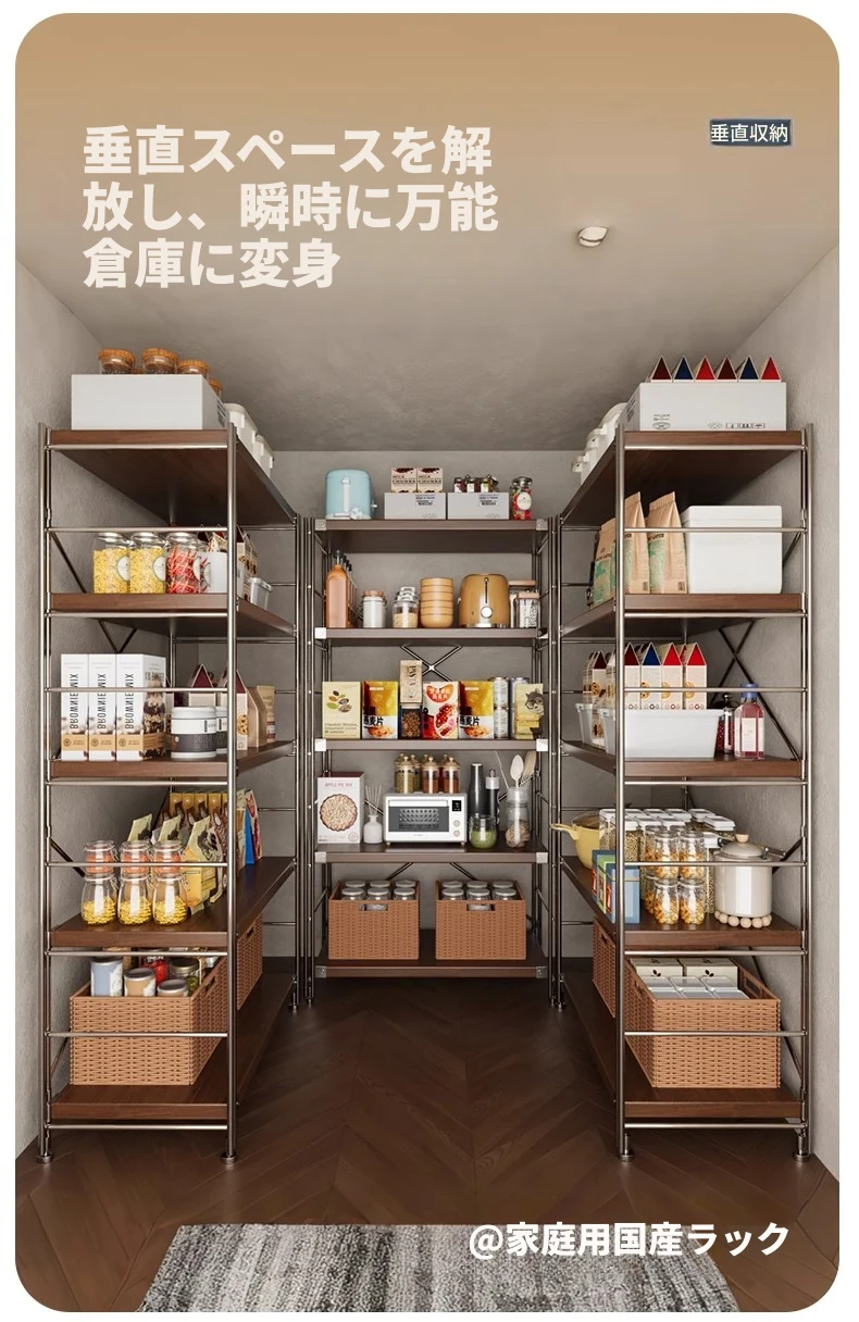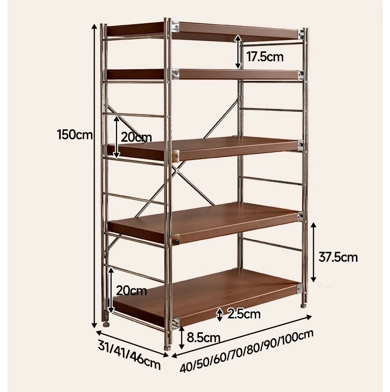 (太い無垢ステンレス 50年壊れない)5段-ウォールナット色80x31x150