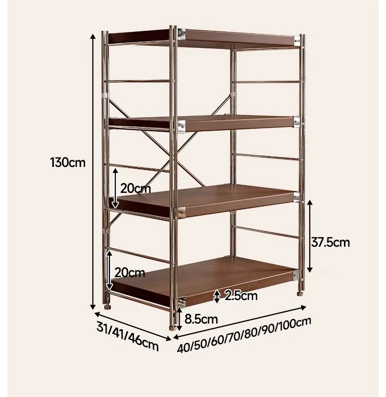(太い無垢ステンレス 50年壊れない)4段-ウォールナット色40x31x130