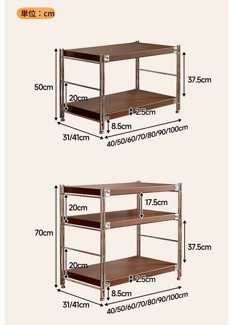(太い無垢ステンレス 50年壊れない)2段-ウォールナット色40*31*50