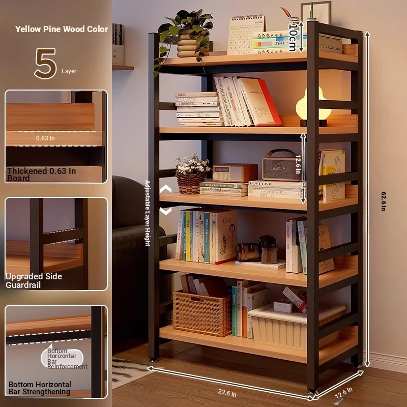 【Door-To-Door Delivery】Yellow Pear Wood Color Five-Tier Shelving Unit [Length 120 * Width 32 * Height 159] Reinforced 0.79in Tubing, Adjustable Shelf Height