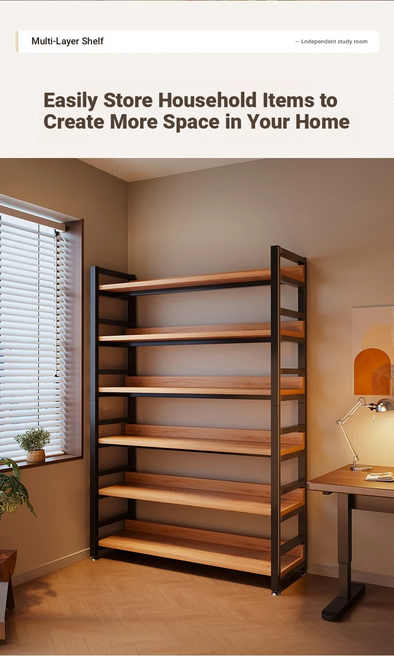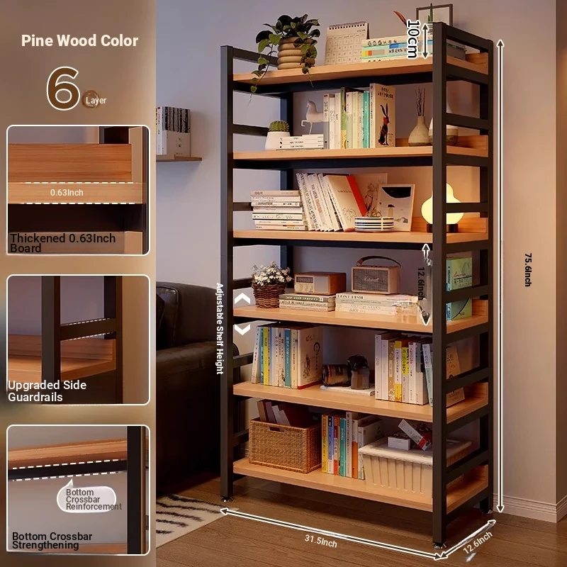 【Door-To-Door Delivery】Yellow Pear Wood Color Six-Tier [Length 120*Width 32*Height 192] Reinforced 0.79in Tubing, Adjustable Shelf Height