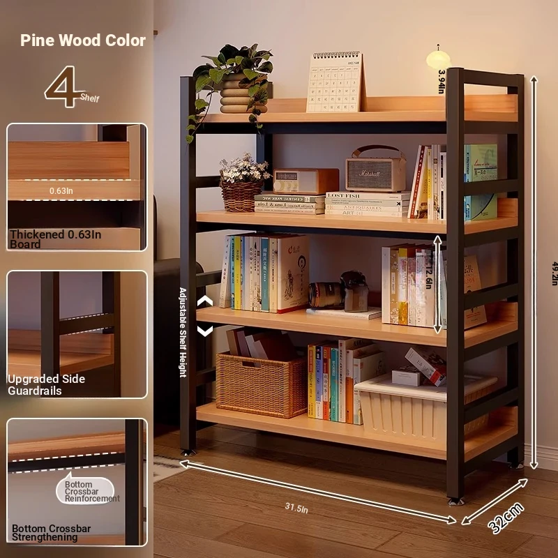 【Door-To-Door Delivery】Yellow Pear Wood Color Four-Tier [Length 120*Width 32*Height 125] Reinforced 0.79in Tubing, Adjustable Shelf Height