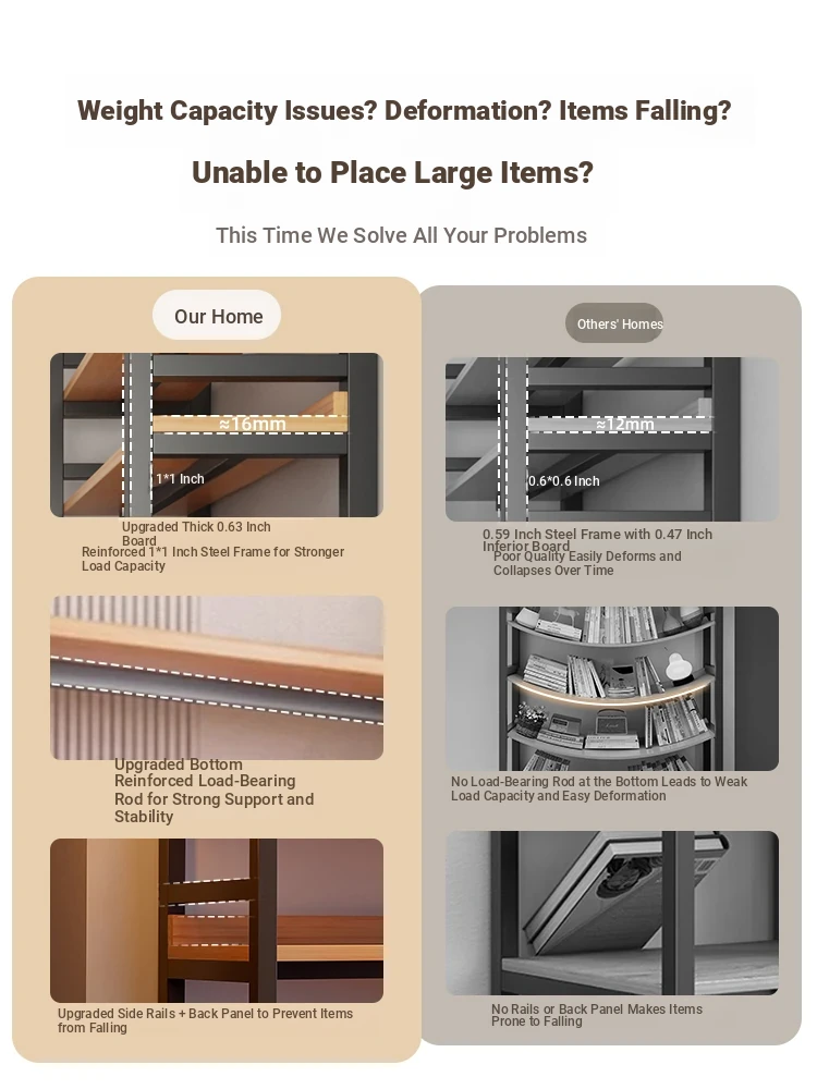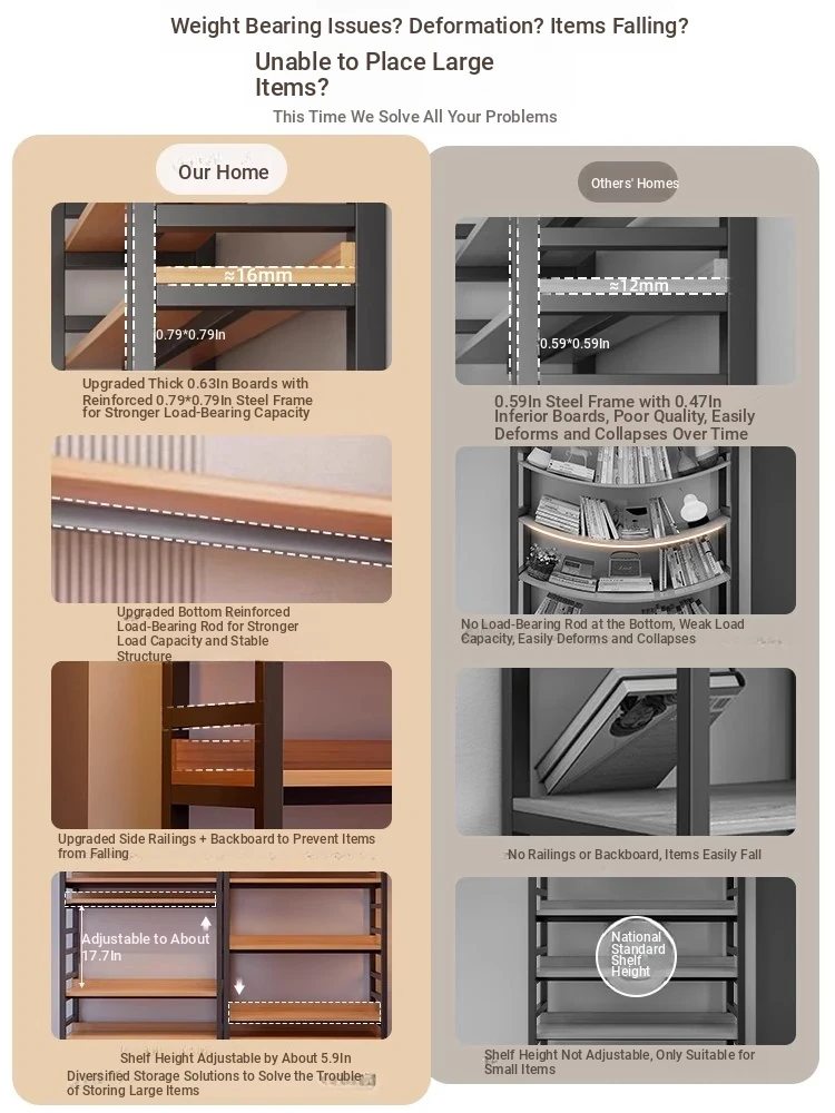 [Upgraded Side Panels + Back Panels to Prevent Falling] [Adjustable Floor Height, Large Items Can Be Placed]