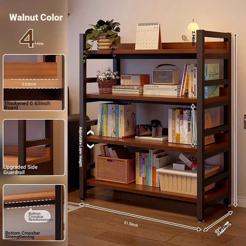 【Door-To-Door Delivery】Walnut Finish Four-Tier Shelving Unit 【Dimensions: Length 31.50in * Width 12.60in * Height 125Cm】Reinforced 0.79in Tubing, Adjustable Shelf Height