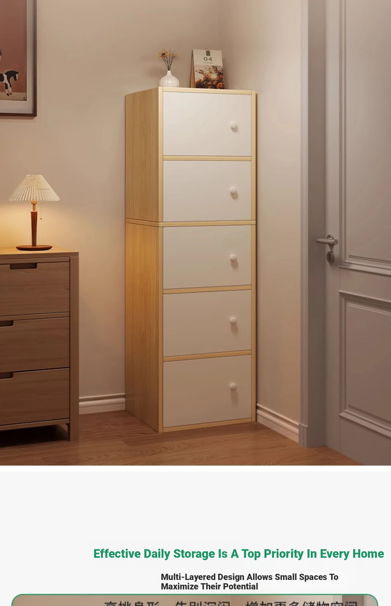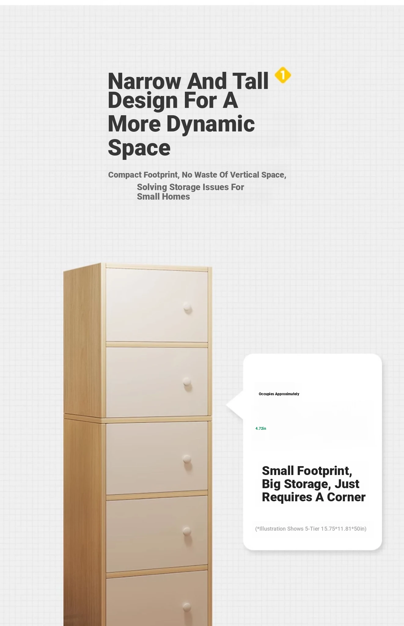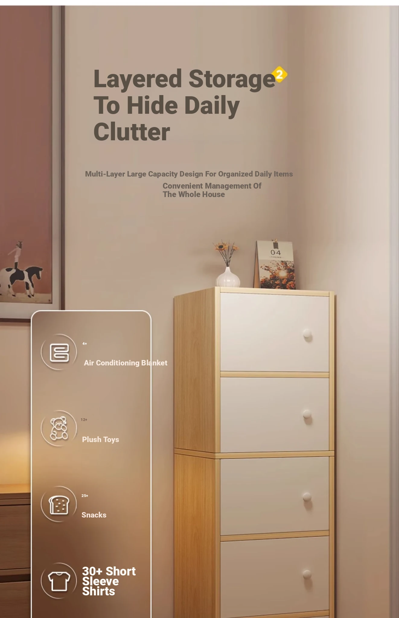 Narrow Drawer Storage Cabinet for Bed End - Stylish Wall-Mounted Organizer for Small Spaces, Perfect for Bedroom Storage Solutions