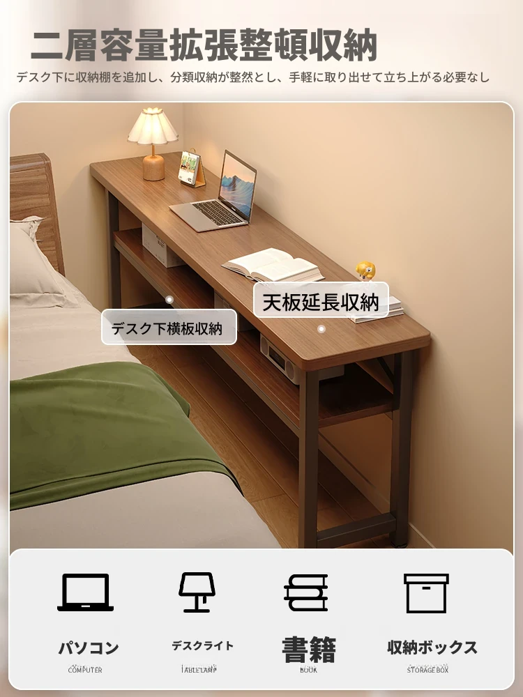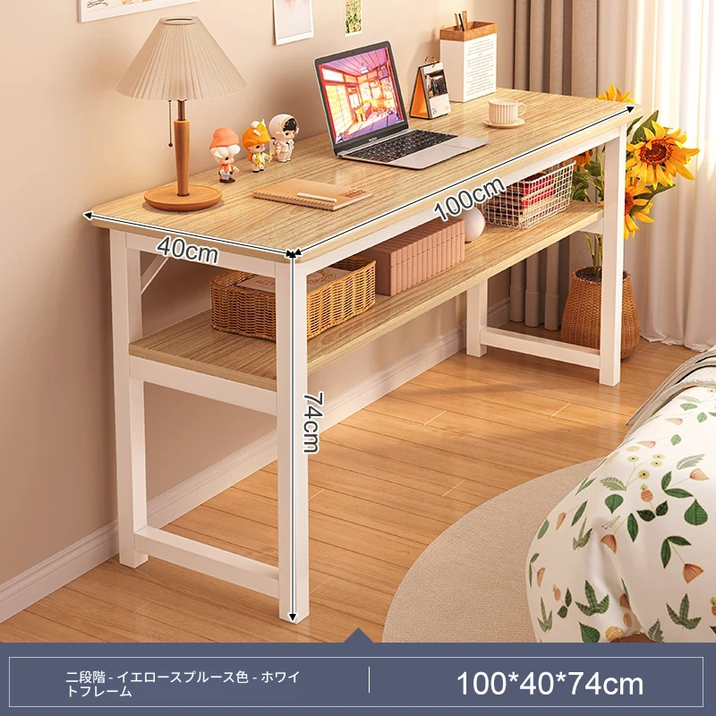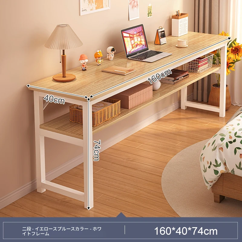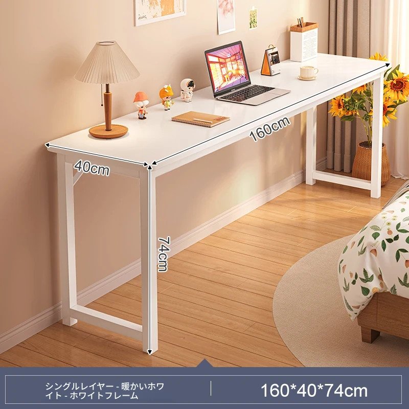 スリムな書斎用デスク - 寝室や家庭に最適な壁寄せロングテーブル。学生の学習や簡単なコンピュータ作業にぴったり!ベッドサイドでも使える便利なワークテーブル。