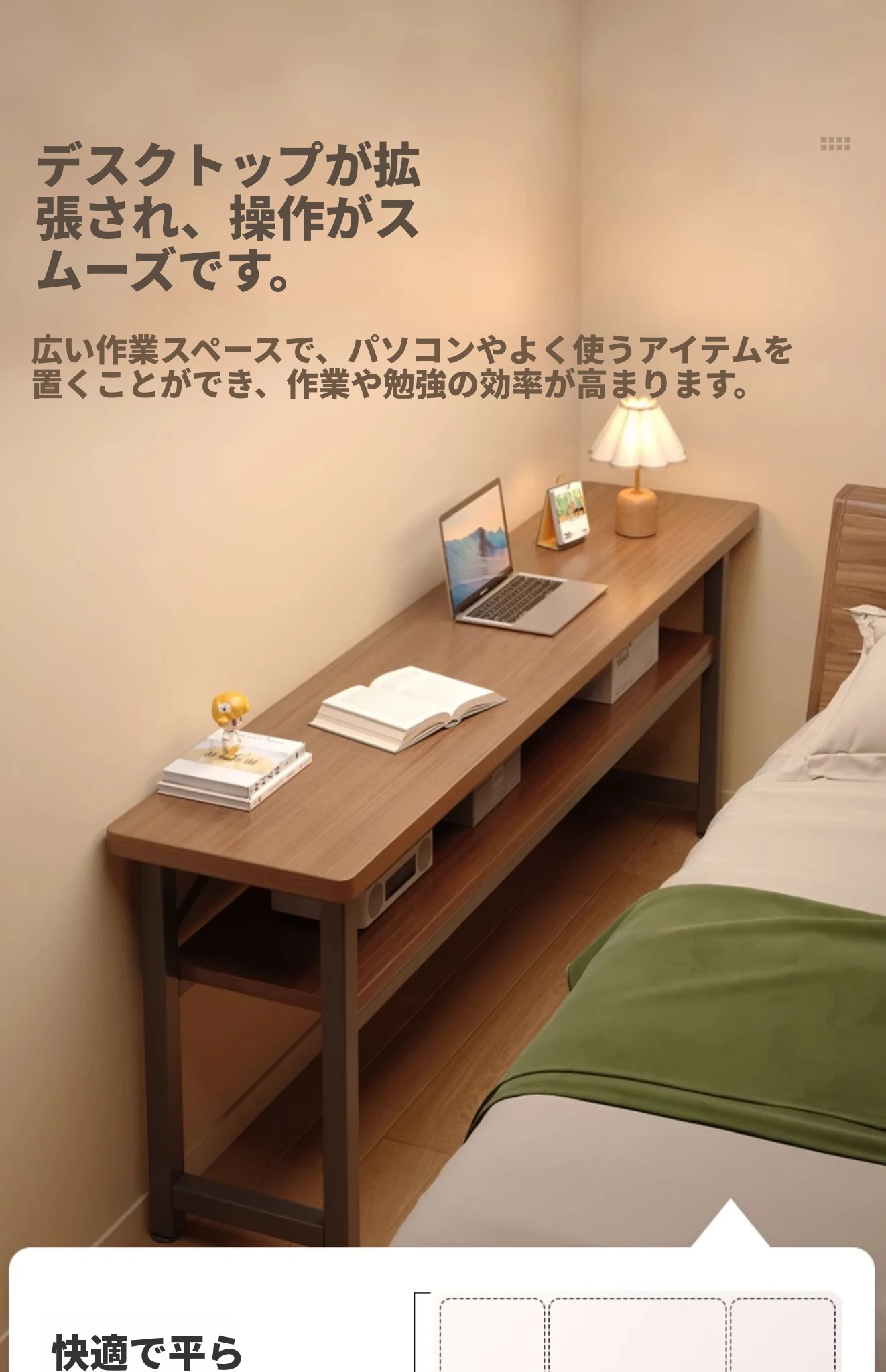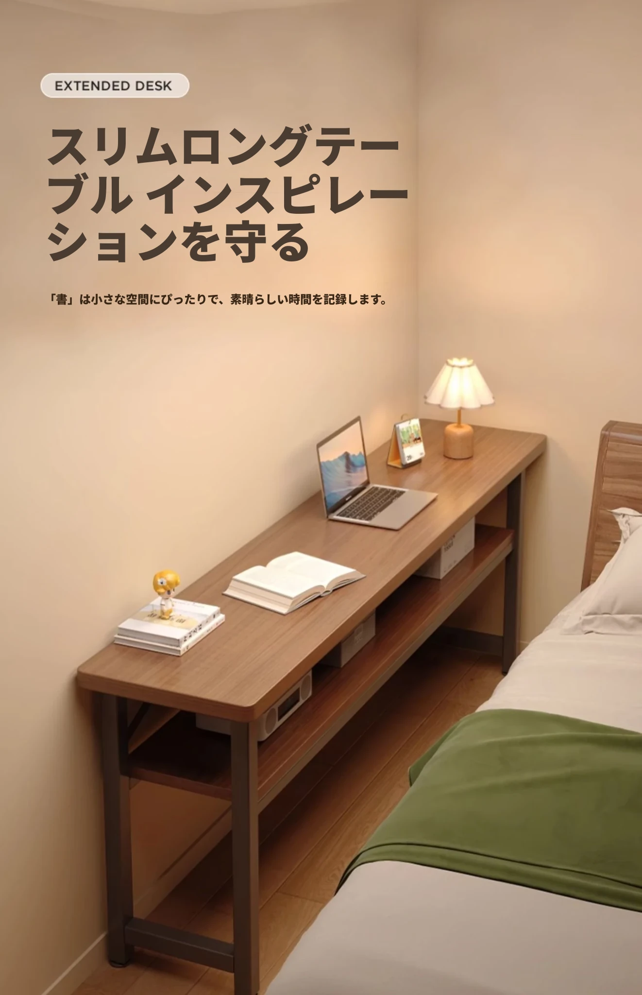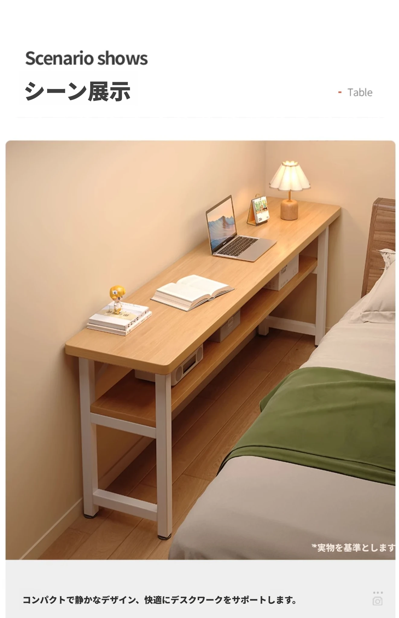 スリムな書斎用デスク - 寝室や家庭に最適な壁寄せロングテーブル。学生の学習や簡単なコンピュータ作業にぴったり!ベッドサイドでも使える便利なワークテーブル。