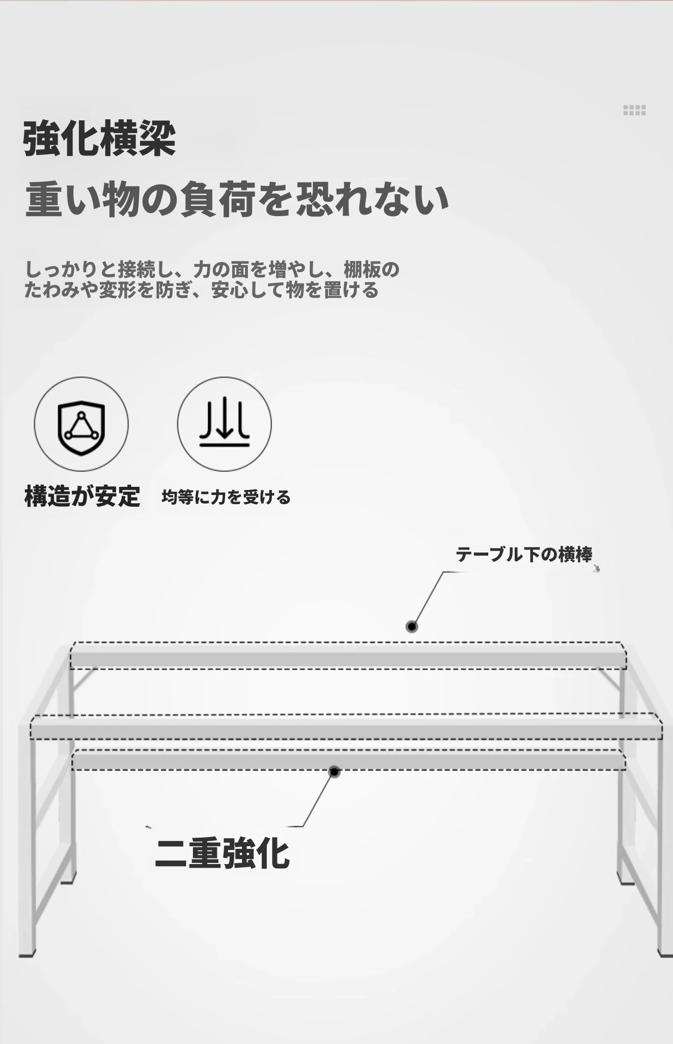 一段❤強化斜め支え|ウォームホワイト140cm