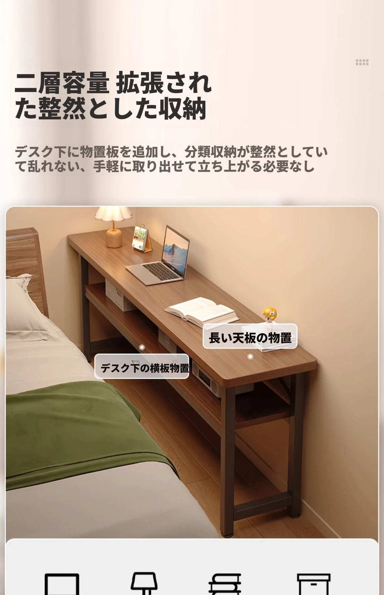 二段❤二倍収納|ウォームホワイト80cm