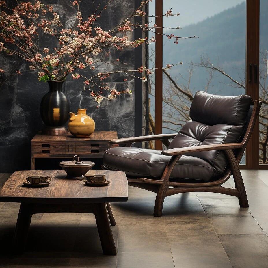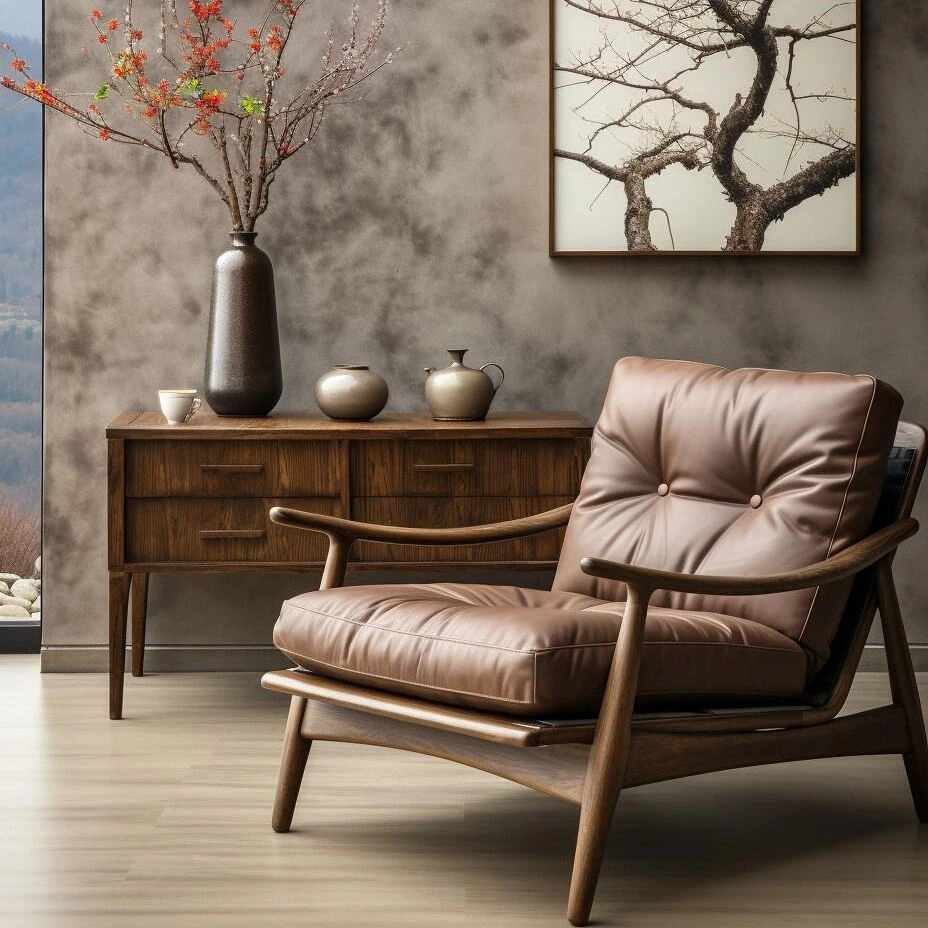 New Chinese Style North American Black Walnut Leisure Chair – Vintage Creative Single Reception Armchair for Hotels and Tea Rooms