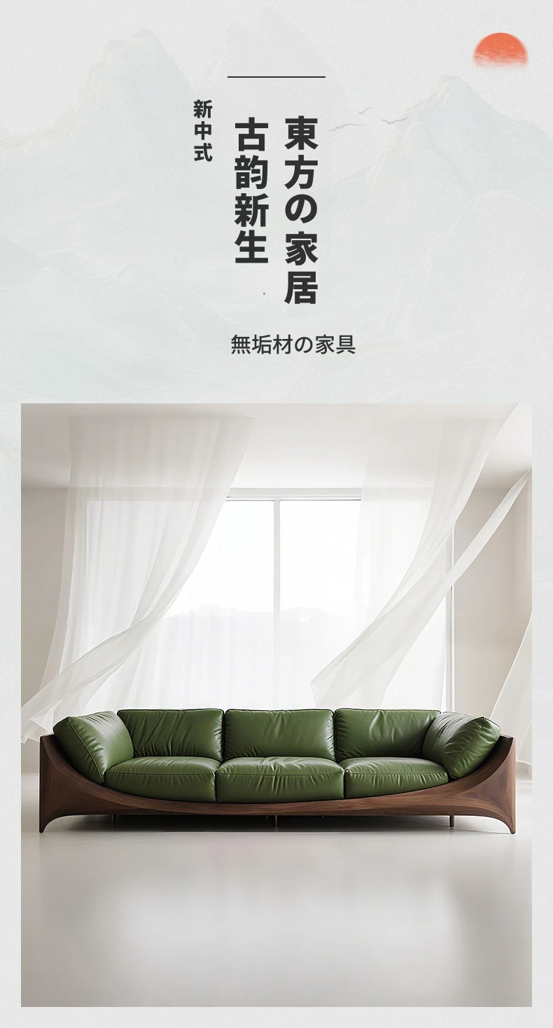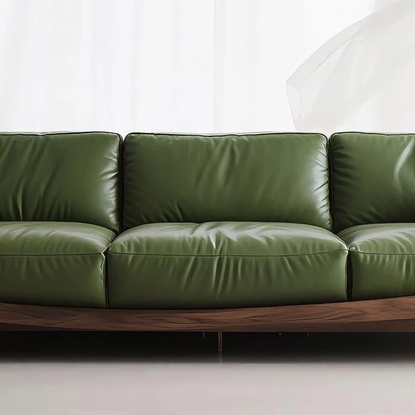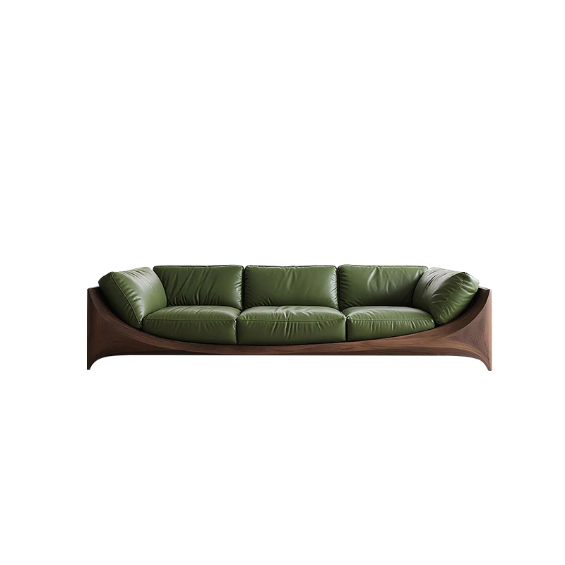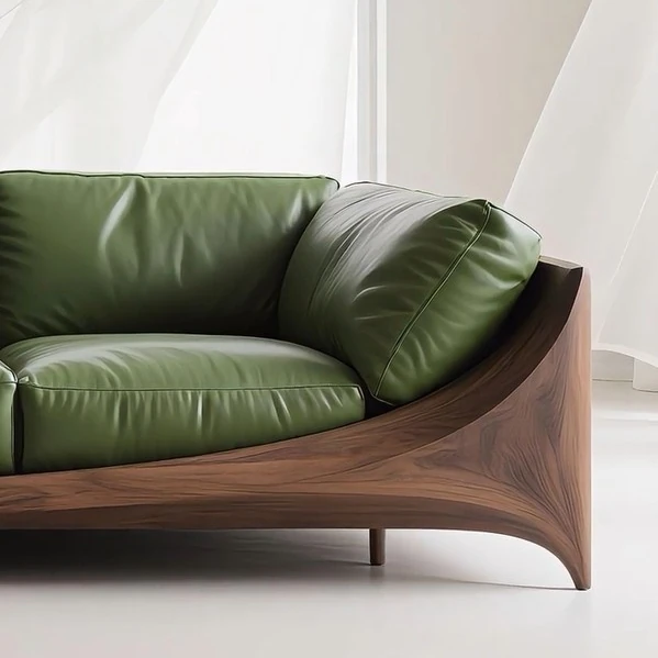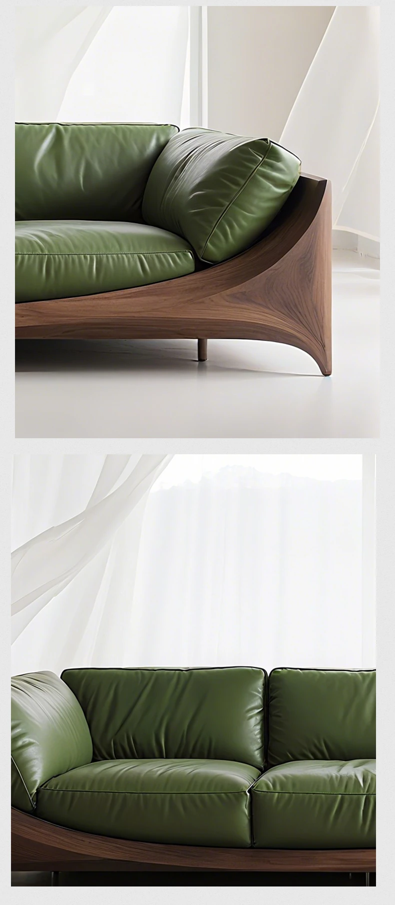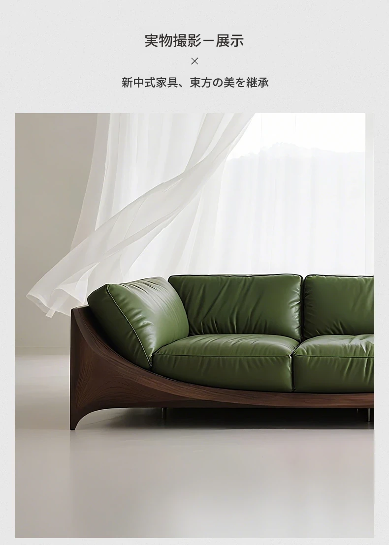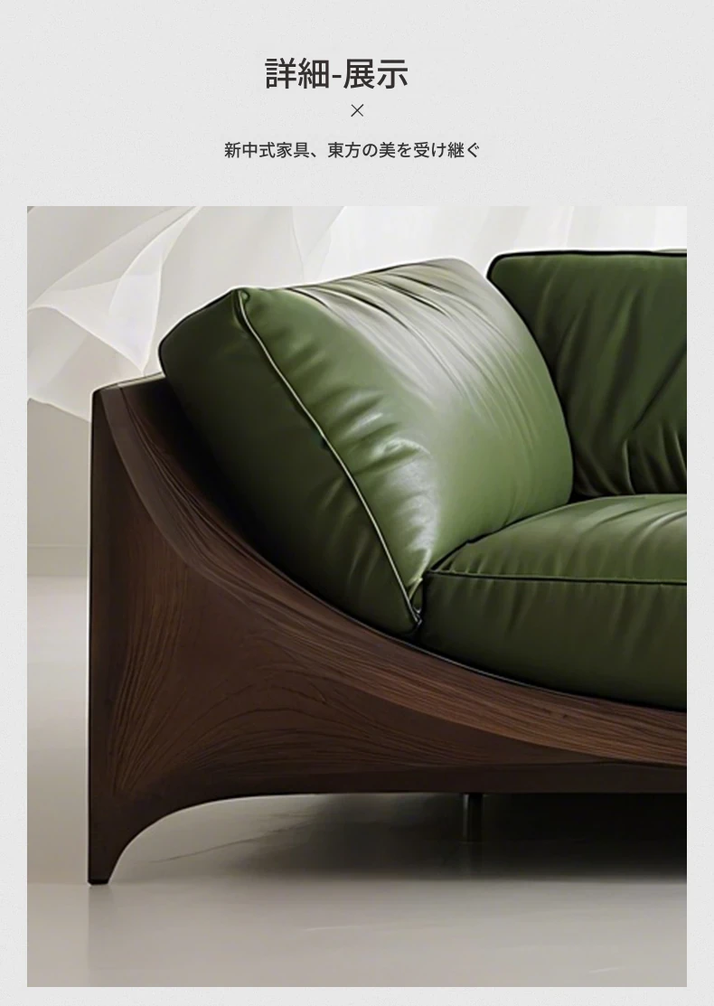 新作 中式デザインの無垢材ソファ シンプルでラグジュアリーなレザーソファ リビングや別荘に最適なウォールナット材の3人掛けソファ