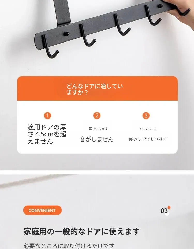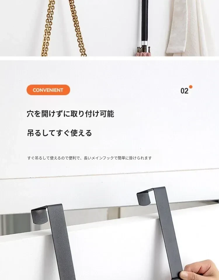 扉の裏に取り付けるフック!穴あけ不要の衣類収納ハンガー。玄関ドアにぴったりの壁掛け衣類フックで、スッキリ整理整頓。おしゃれで便利な収納アイテム!