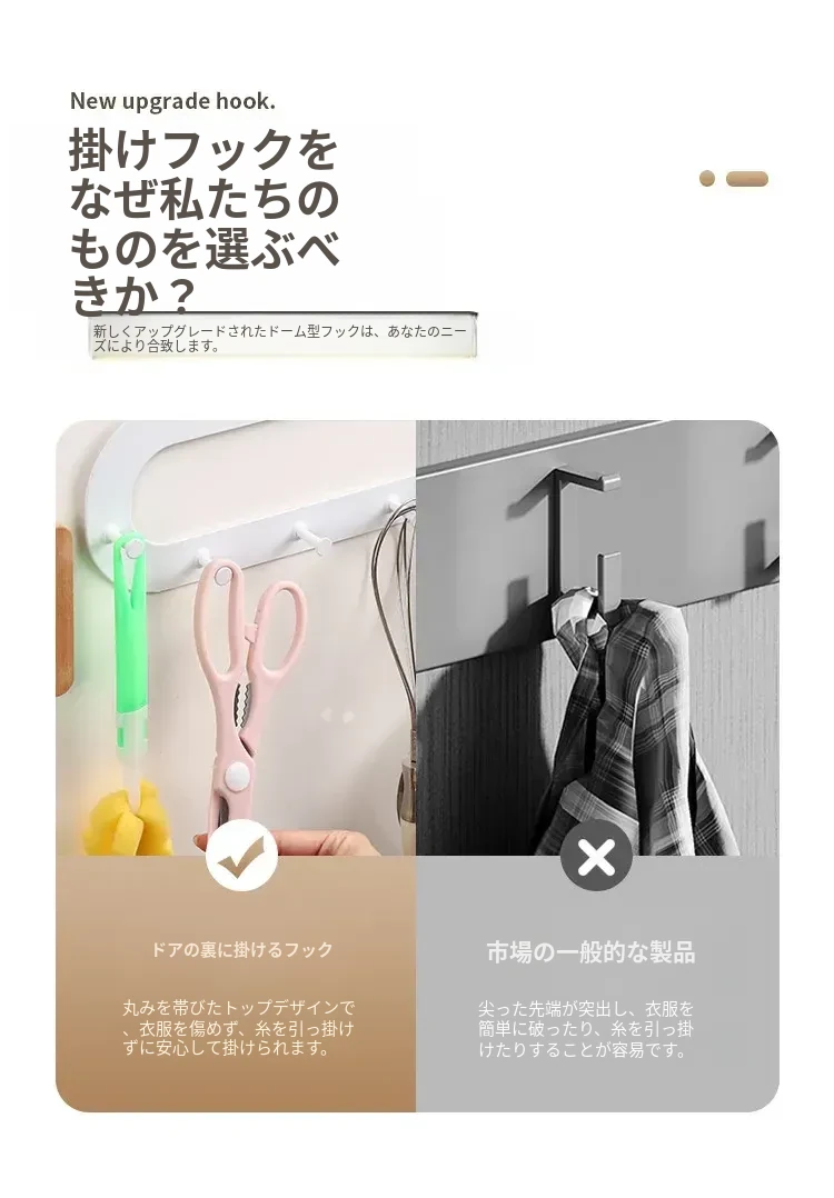 ドア背面フック 穴あけ不要の衣類・帽子収納ラック 寝室・バスルームにぴったり!無痕で取り付け簡単なドア上フックハンガーでスッキリ整理整頓!