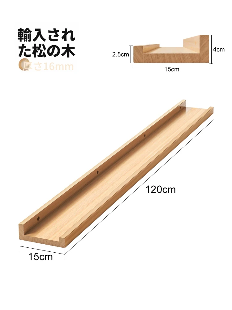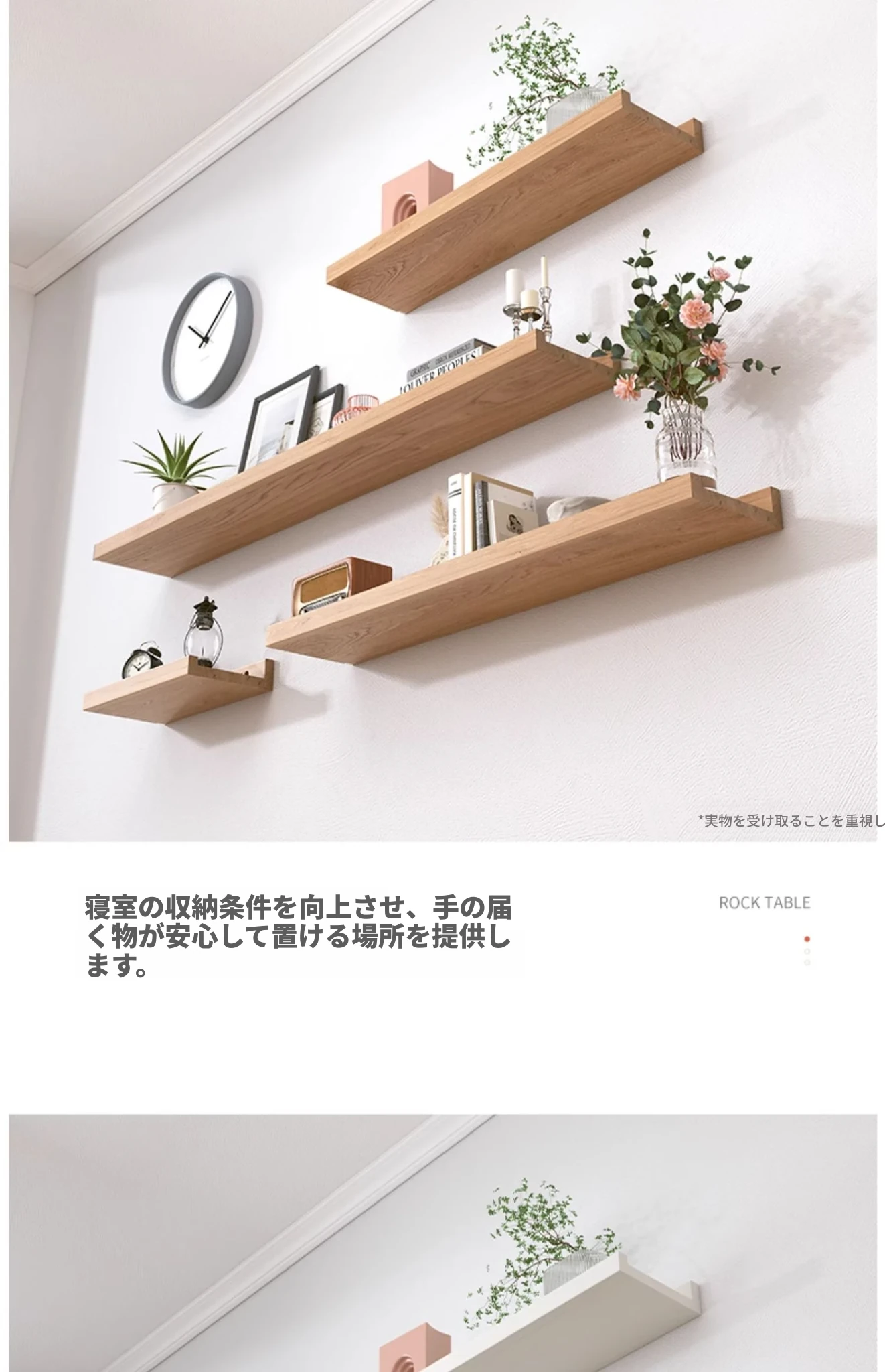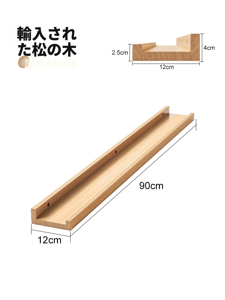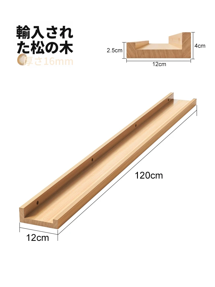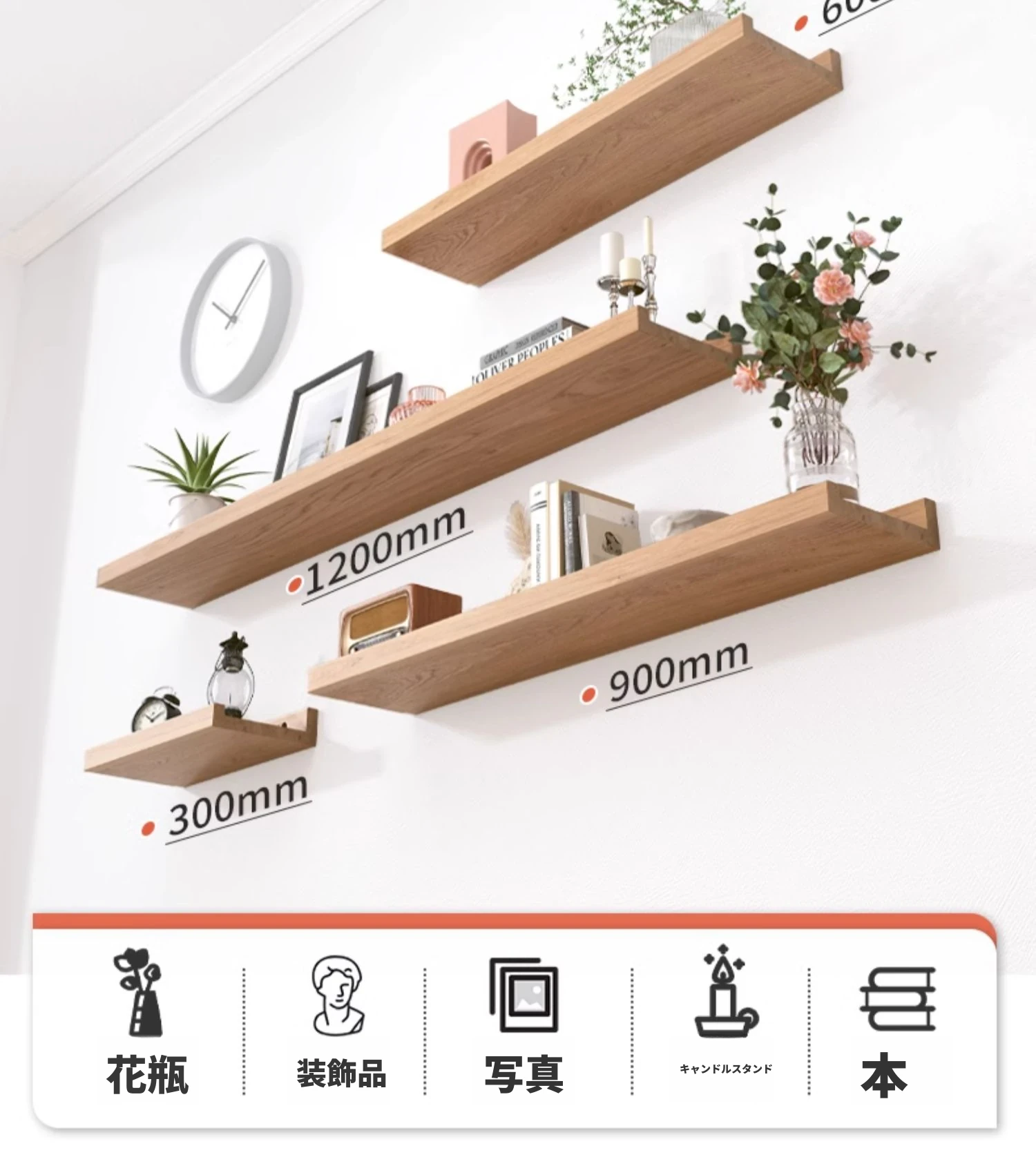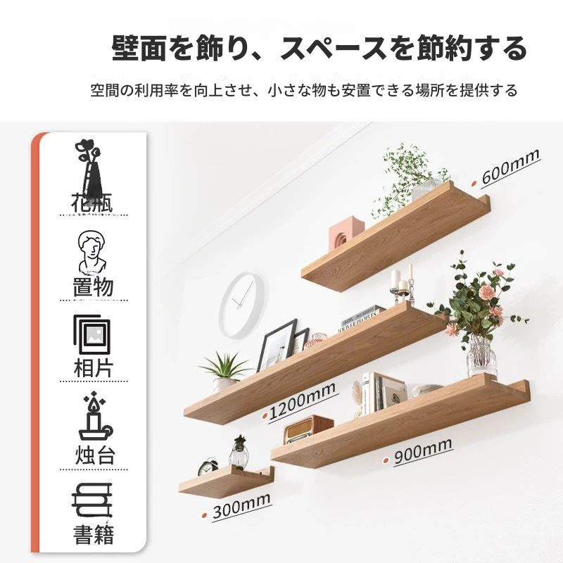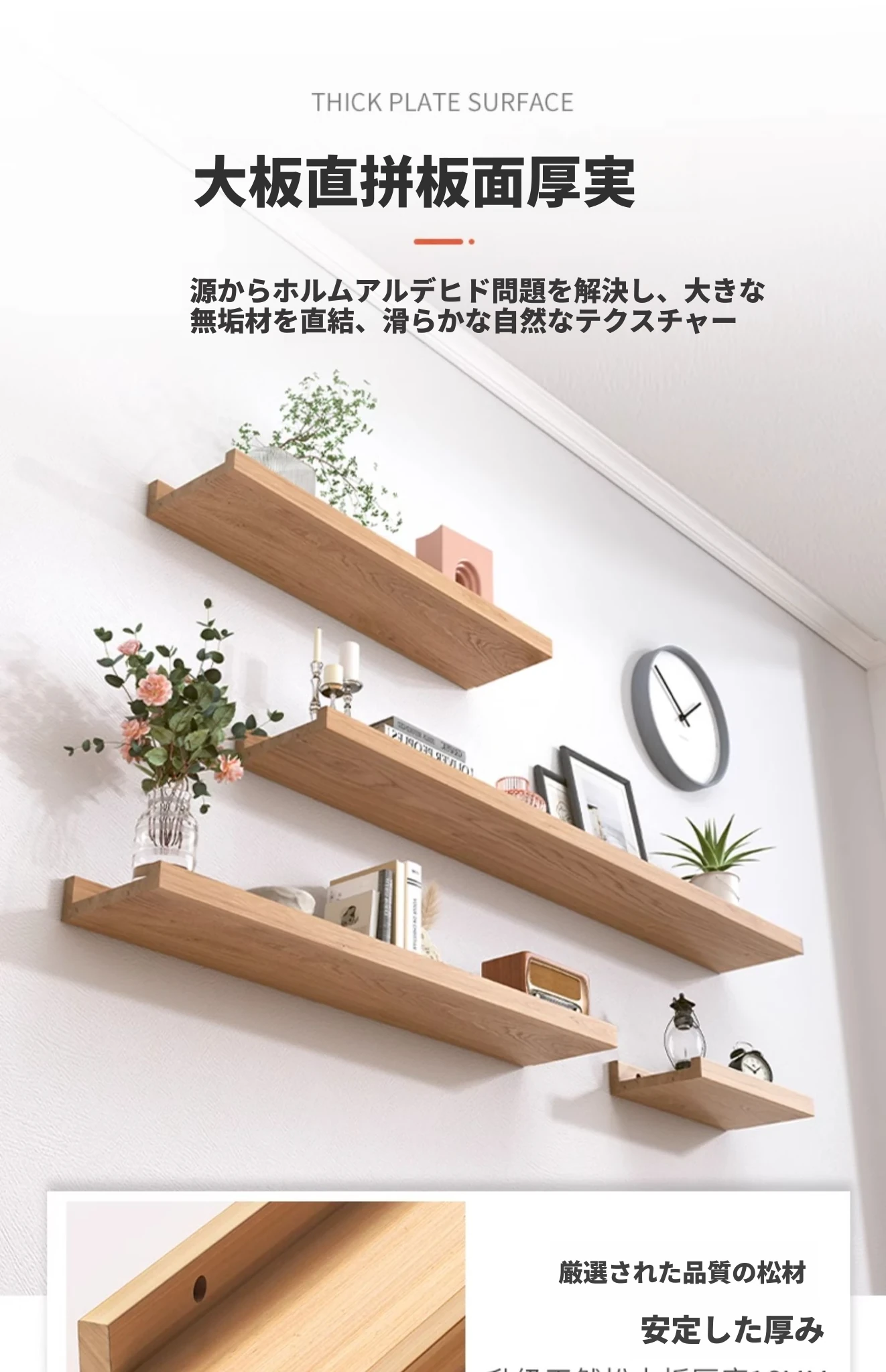 壁掛け棚 簡単取り付け 無穴タイプ 天然木製 一字型シェルフ 壁面ディスプレイラック リビングの背景装飾に最適!おしゃれで機能的な収納で、空間をスタイリッシュに演出します。
