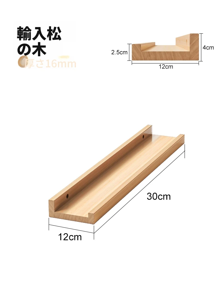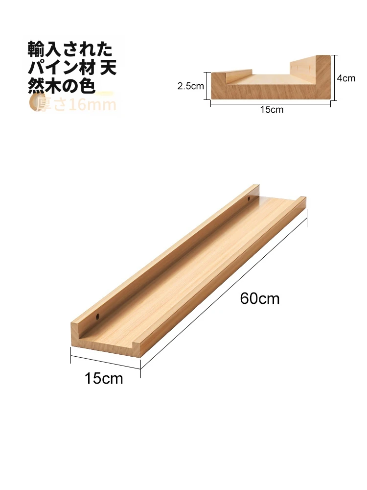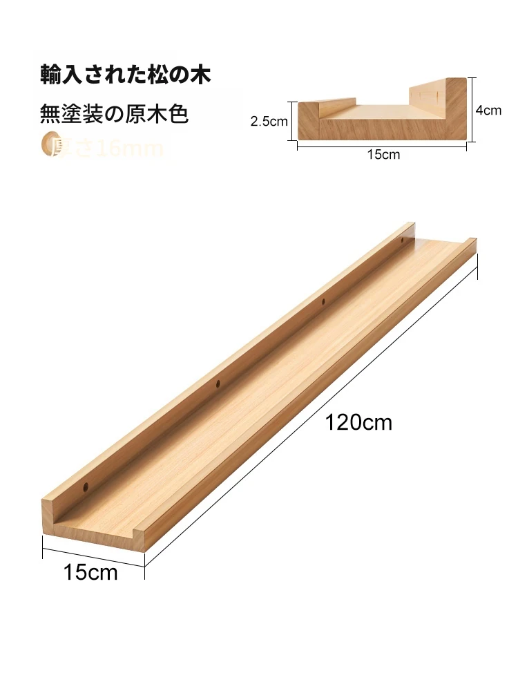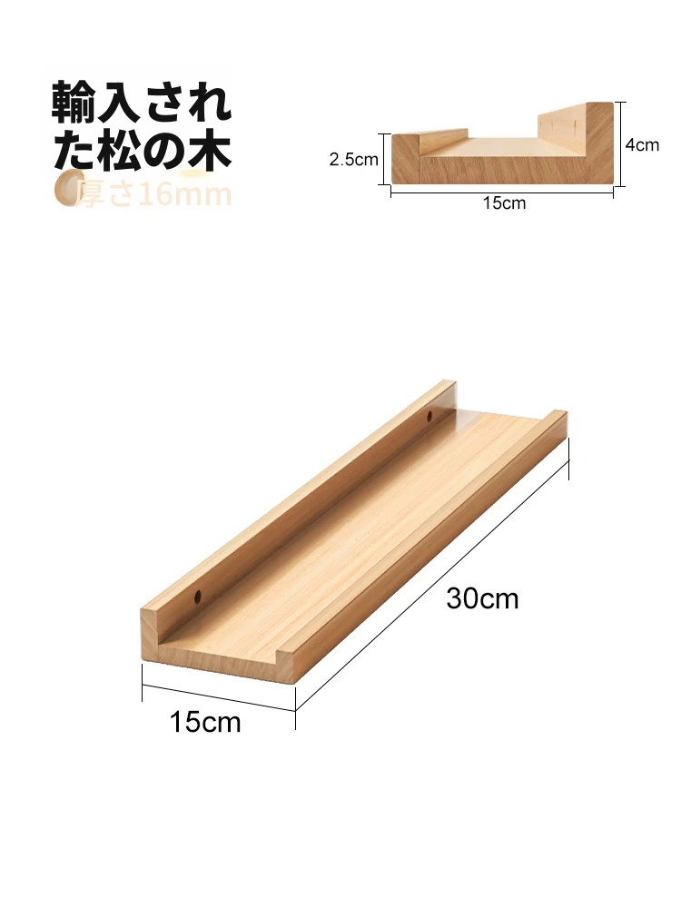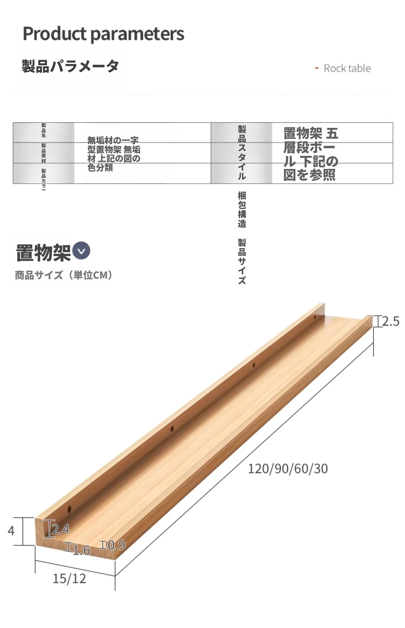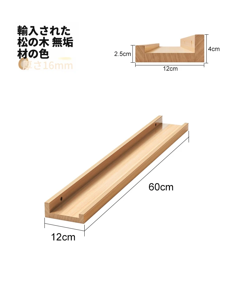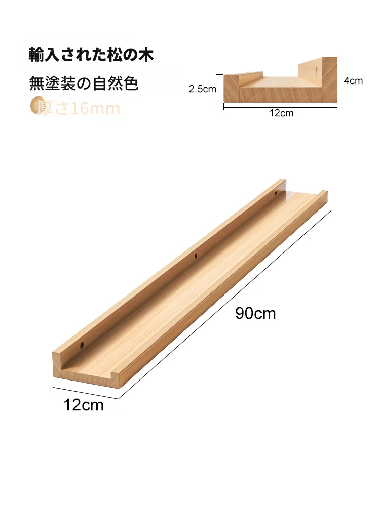 壁掛け棚 簡単取り付け 無穴タイプ 天然木製 一字型シェルフ 壁面ディスプレイラック リビングの背景装飾に最適!おしゃれで機能的な収納で、空間をスタイリッシュに演出します。