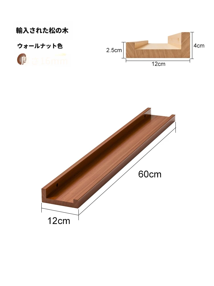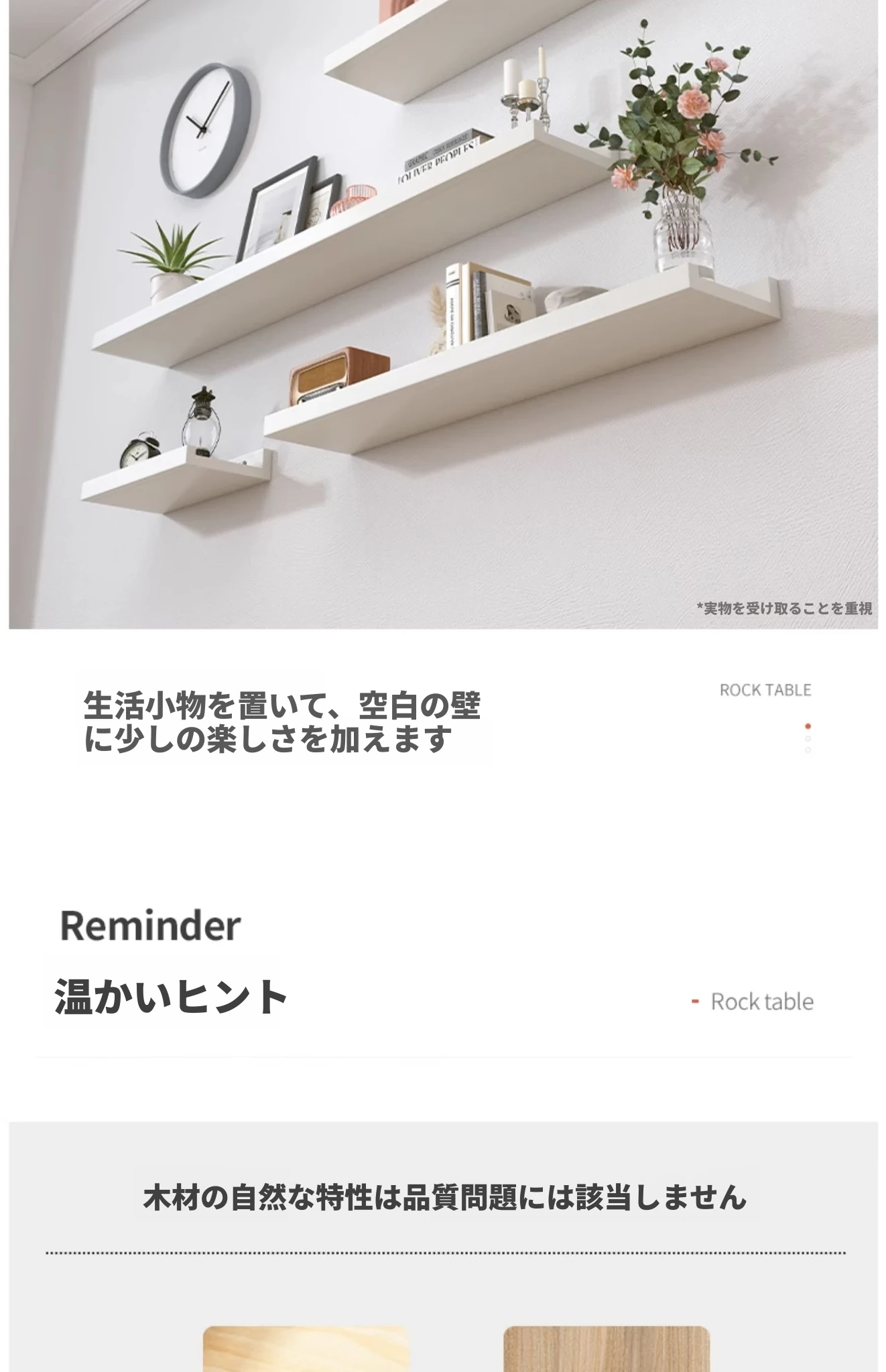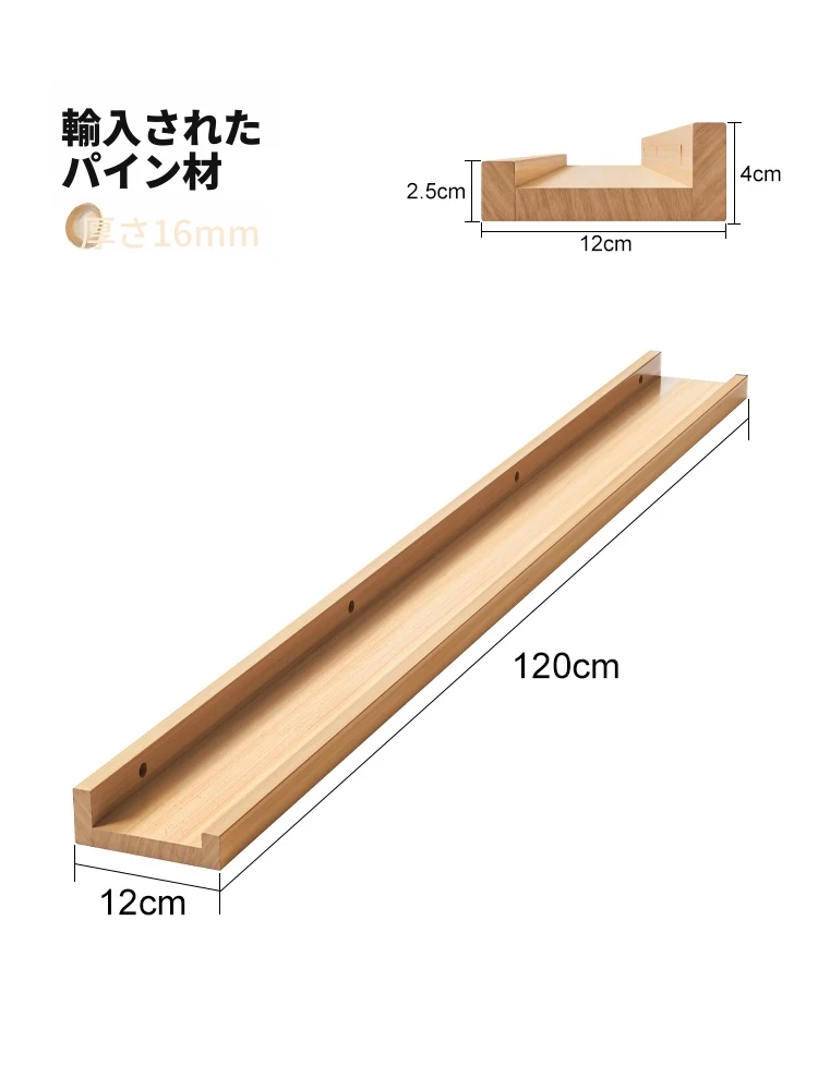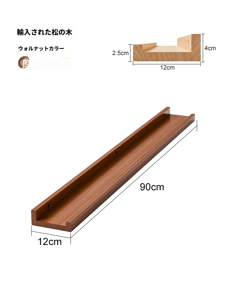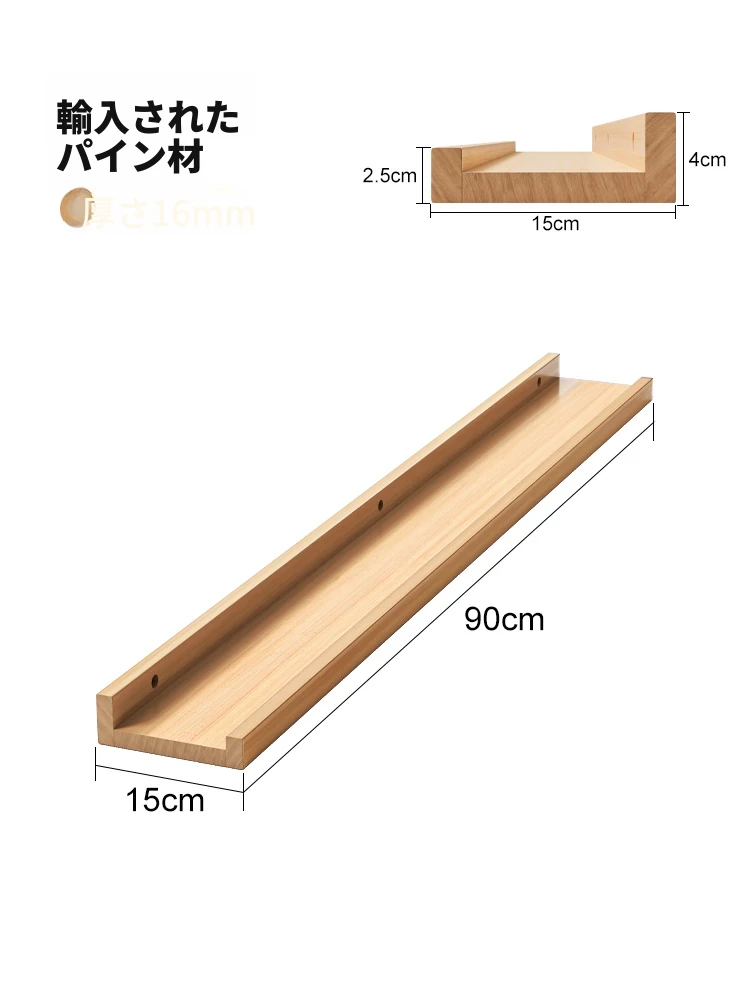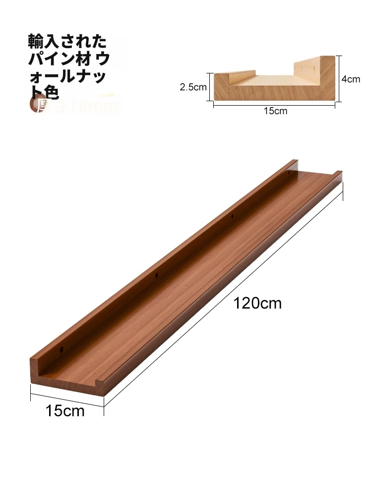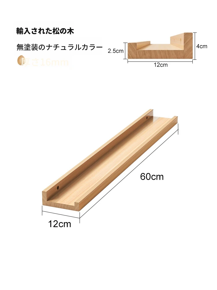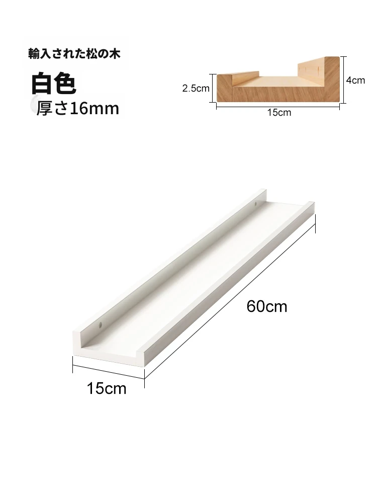 壁掛け棚 簡単取り付け 無穴タイプ 天然木製 一字型シェルフ 壁面ディスプレイラック リビングの背景装飾に最適!おしゃれで機能的な収納で、空間をスタイリッシュに演出します。