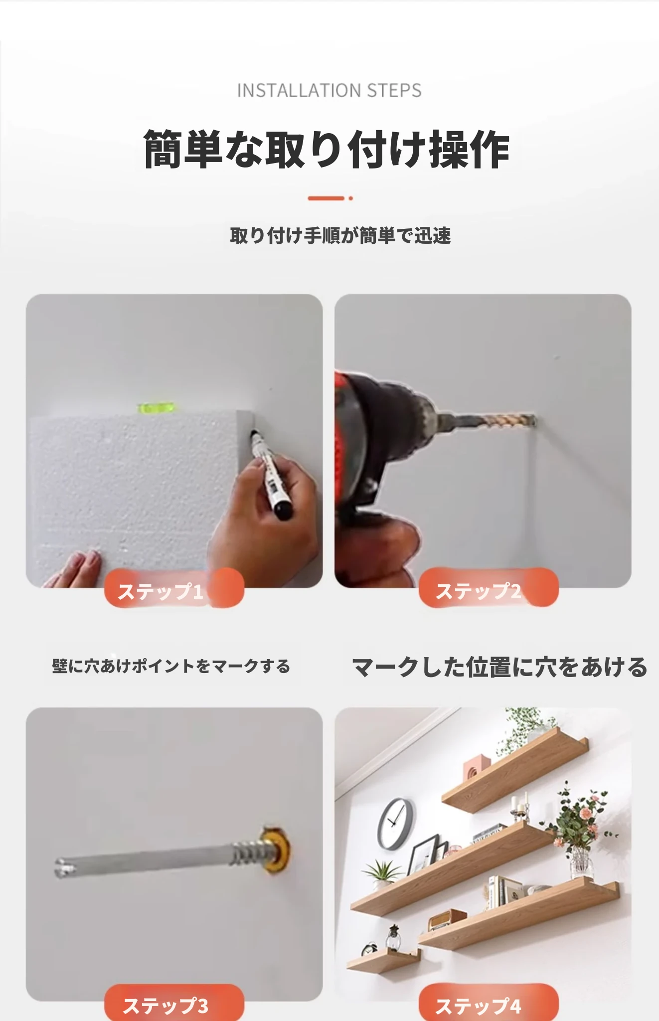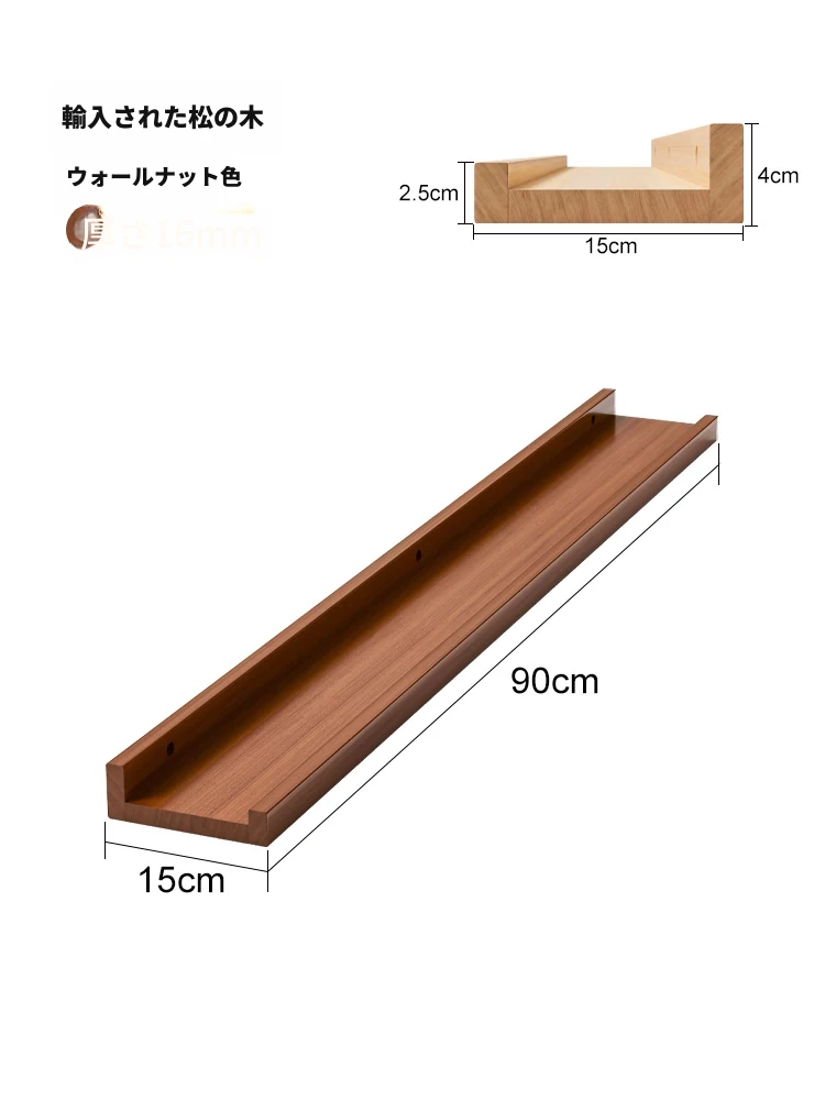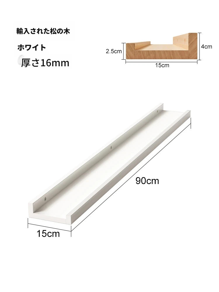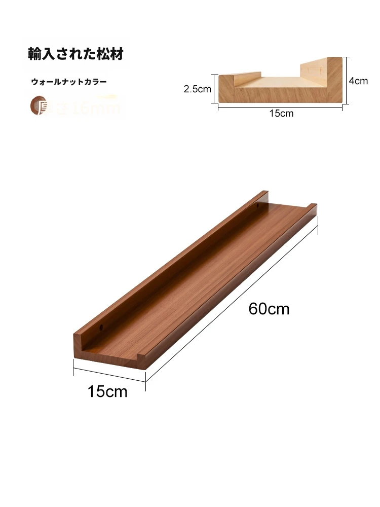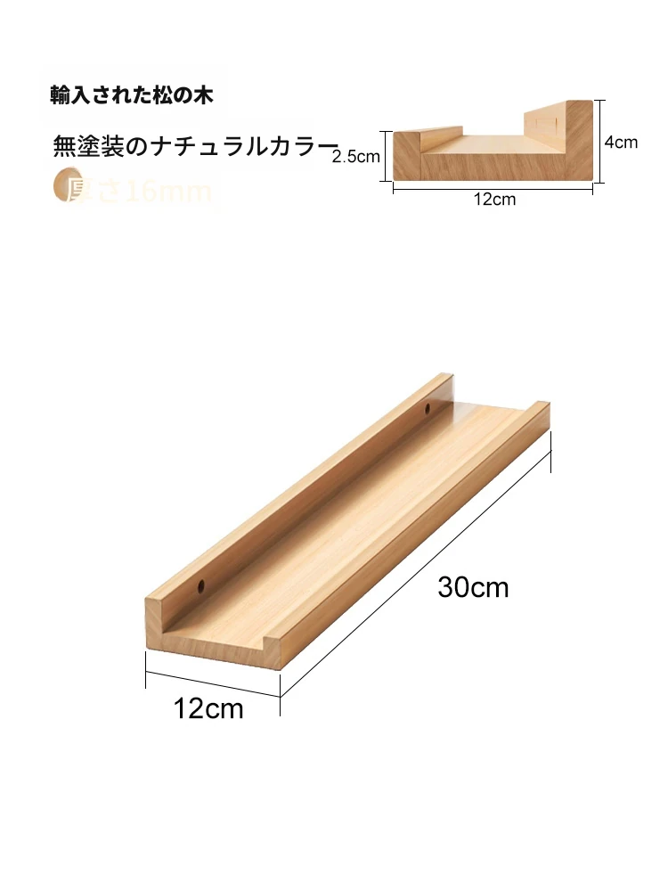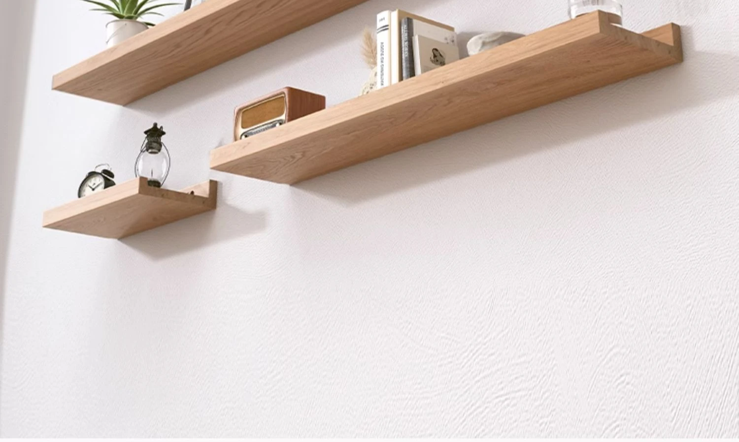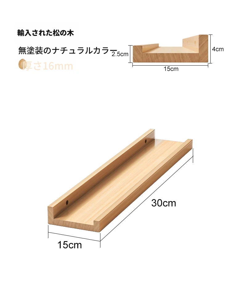 壁掛け棚 簡単取り付け 無穴タイプ 天然木製 一字型シェルフ 壁面ディスプレイラック リビングの背景装飾に最適!おしゃれで機能的な収納で、空間をスタイリッシュに演出します。